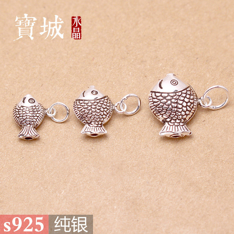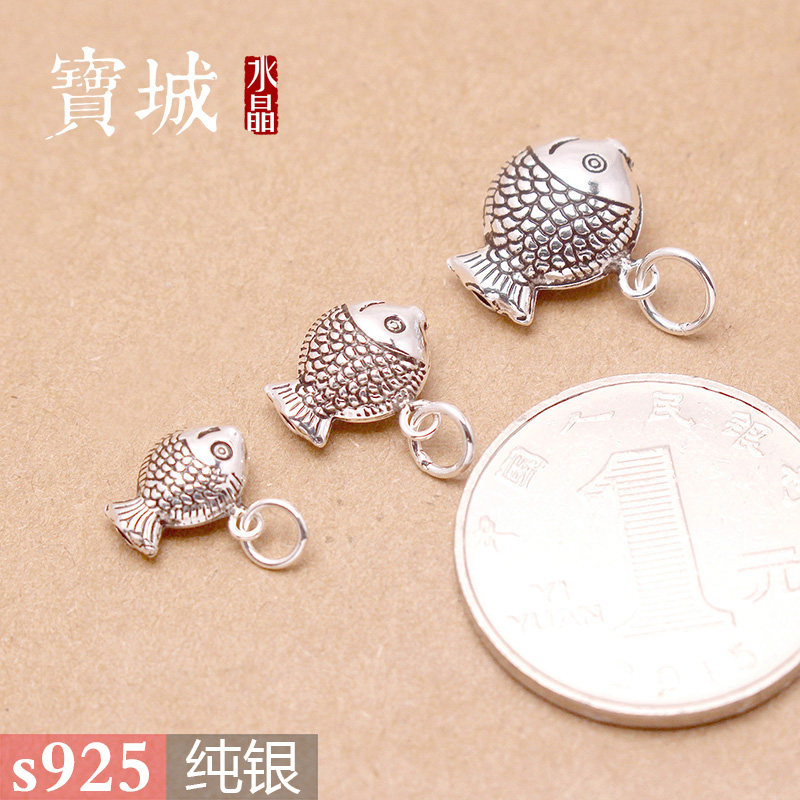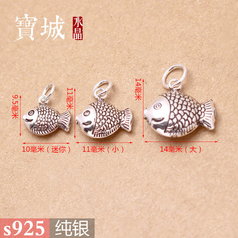 📚 s925纯银立体银鱼挂件 泰银配件DIY水晶手链佛珠手串项链配饰材料