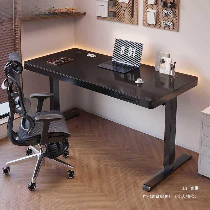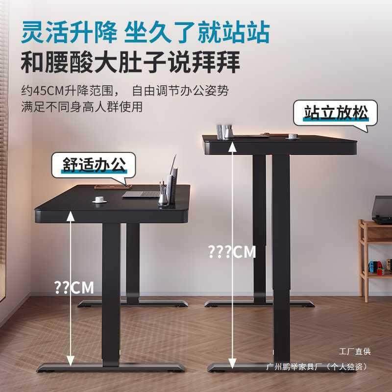 📚 稳固钢VCP玻璃电动降电脑桌家用办台公书桌式静音电化机可升调节