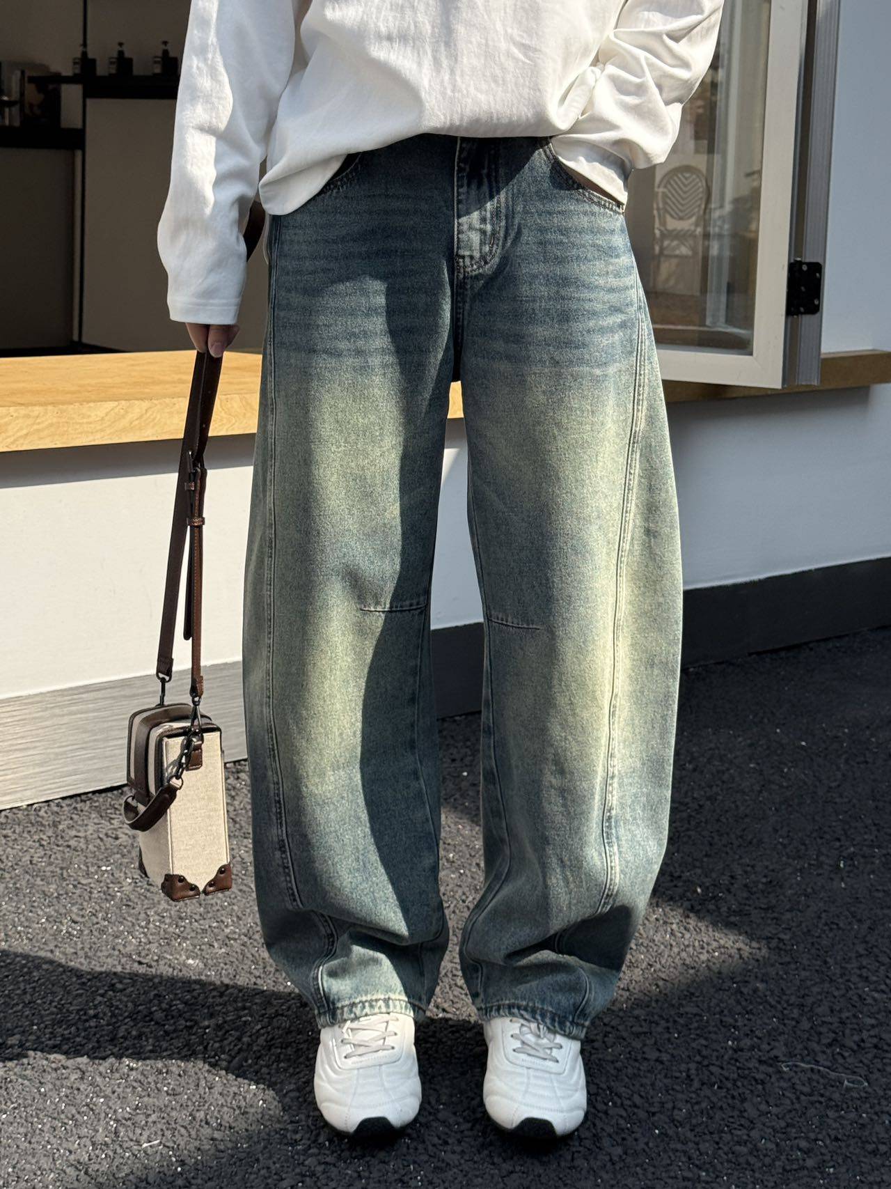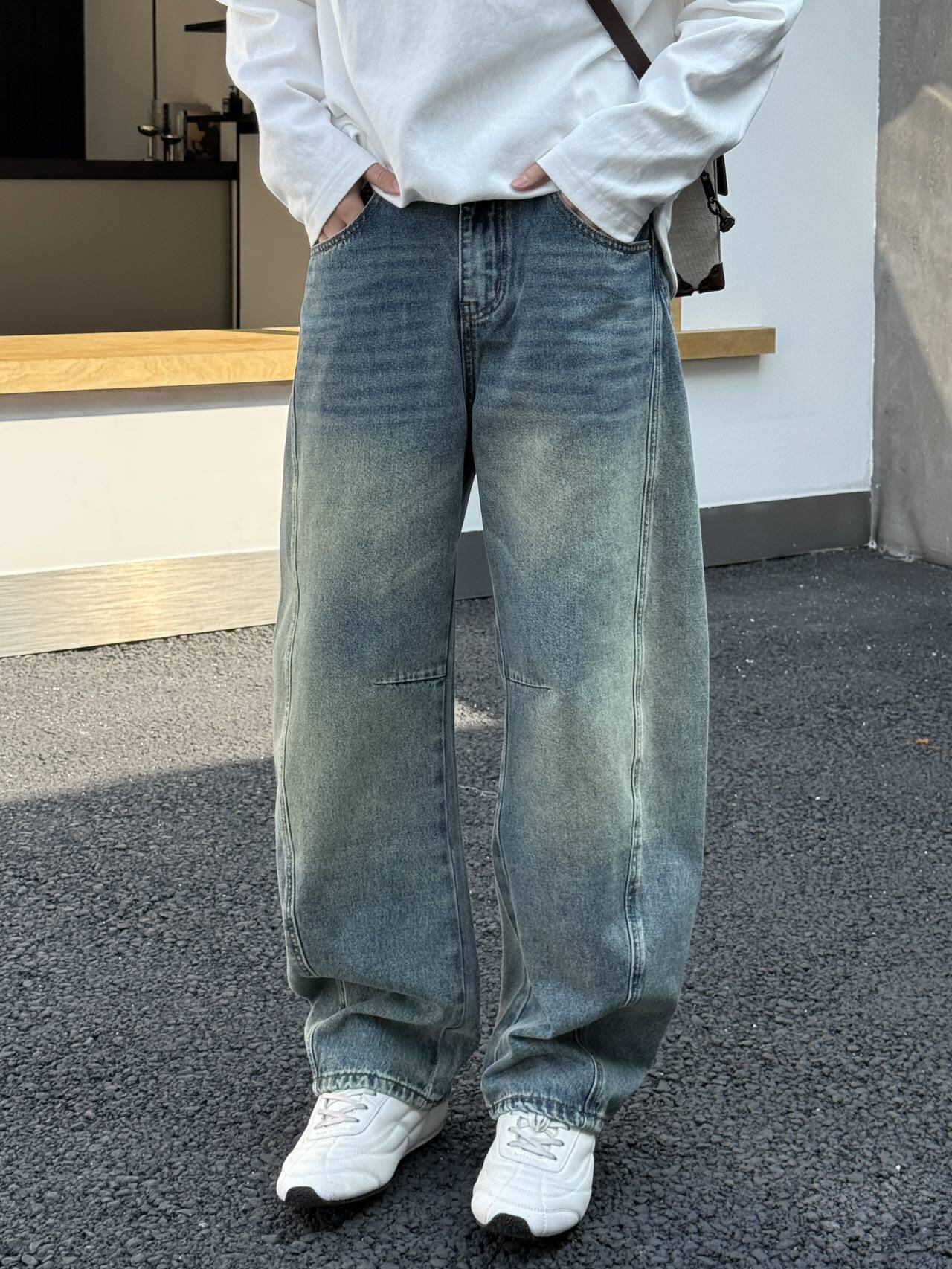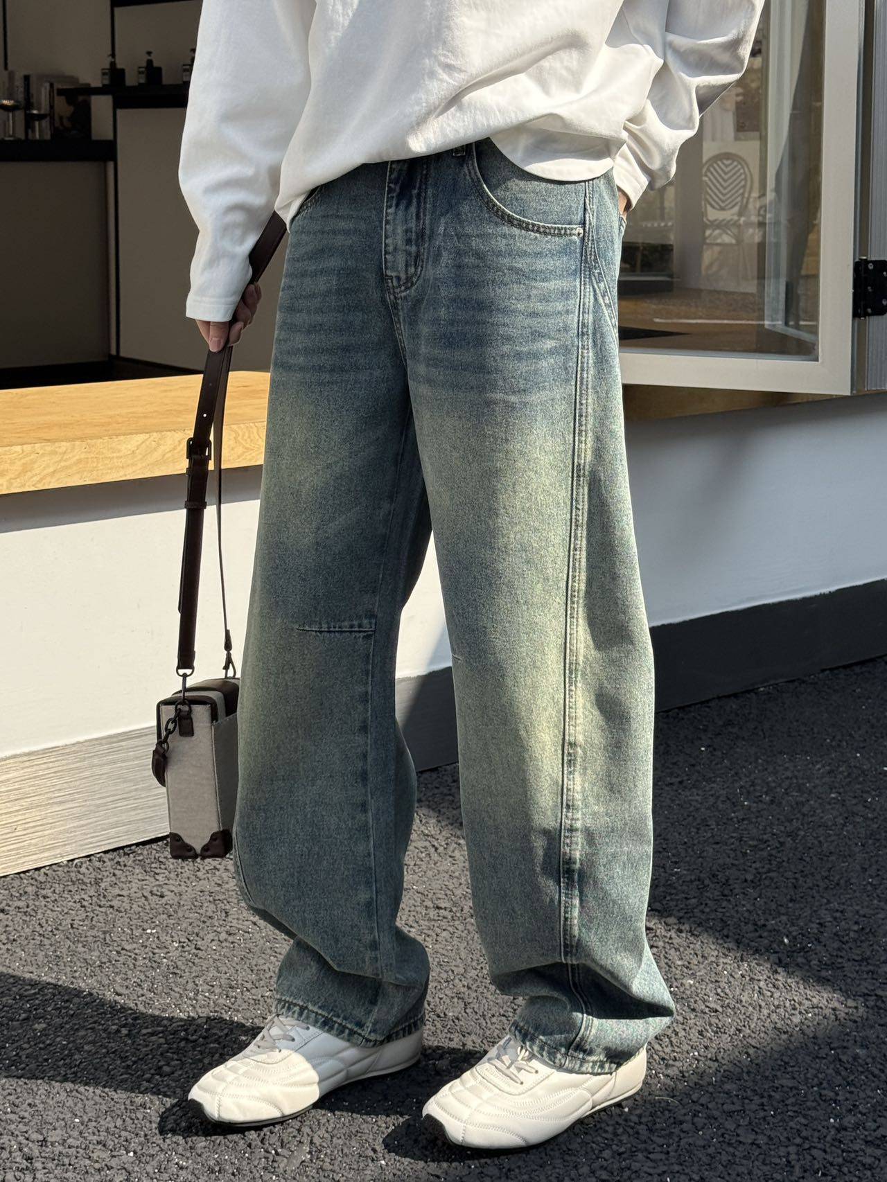 📚 2026春季新款美式复古水洗做旧小弯刀牛仔裤男时尚通勤百搭直筒裤