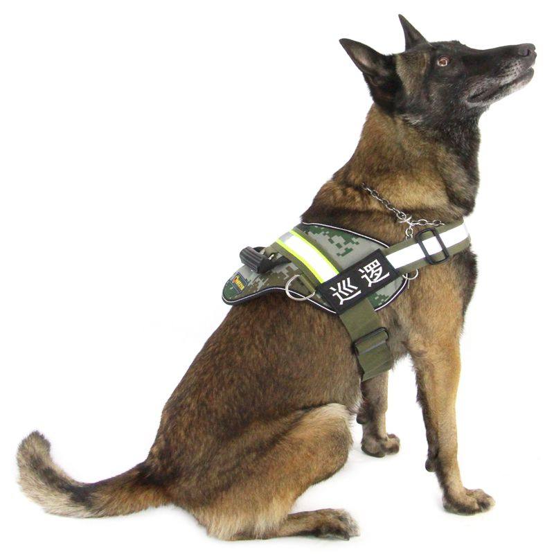 📚 执勤巡逻工作犬胸背带马牵引带德牧搜救犬夜间反光背心消防套背