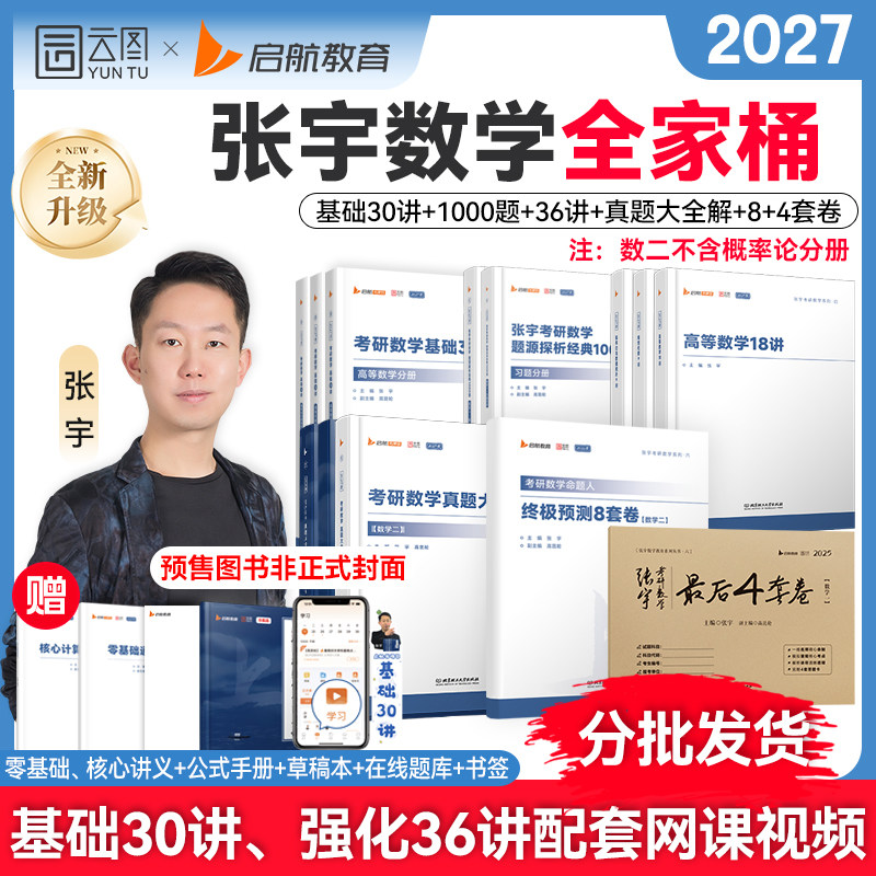 📚 【云图官方】张宇2027考研数学全家桶基础30讲书课包课程高数18讲线代9讲强化36讲1000题真题大全解8+4套卷考研数学书课包配套视频