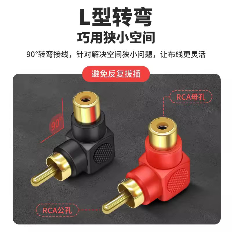 📚 RCA公对母90度L型转接头音频线转换器插头弯头功放音响音箱调音台
