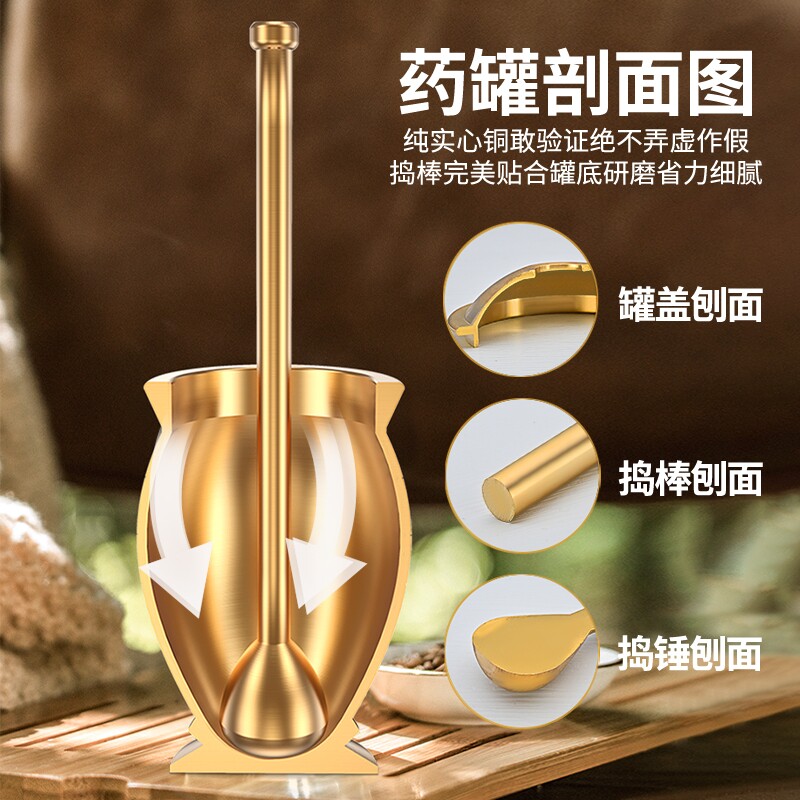 📚 纯铜捣药罐杵子药盅擂钵臼缸研钵臼黄铜盅捣碎捣蒜泥器厨房研磨器