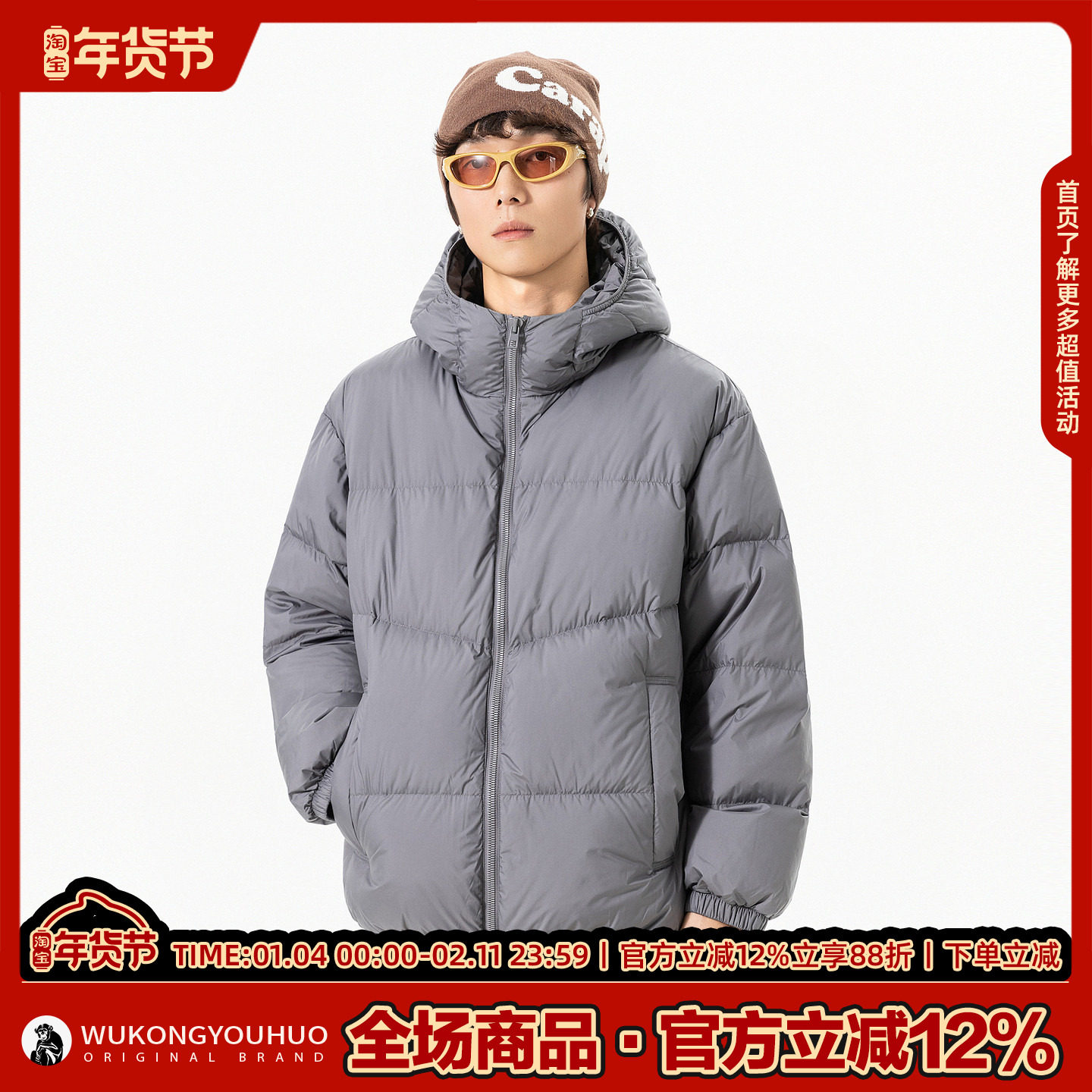 📚 悟空有货冬季潮牌90绒加厚连帽羽绒服男女复古防寒保暖面包服外套