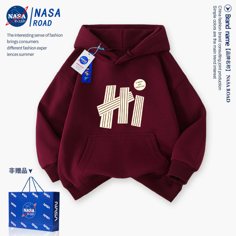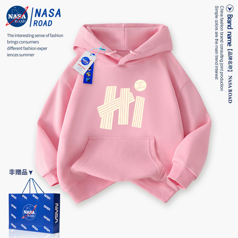 📚 NASA蓝色男童连帽卫衣秋冬2025新款潮流帅气中大儿童加绒上衣外套