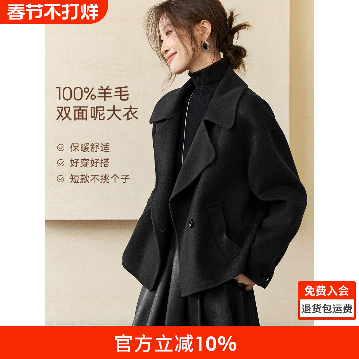 📚 沫晗依美100绵羊毛气质双面呢外套2025冬季大翻领风衣式大衣女