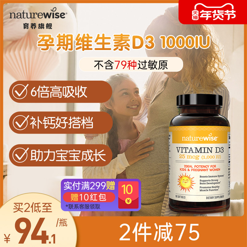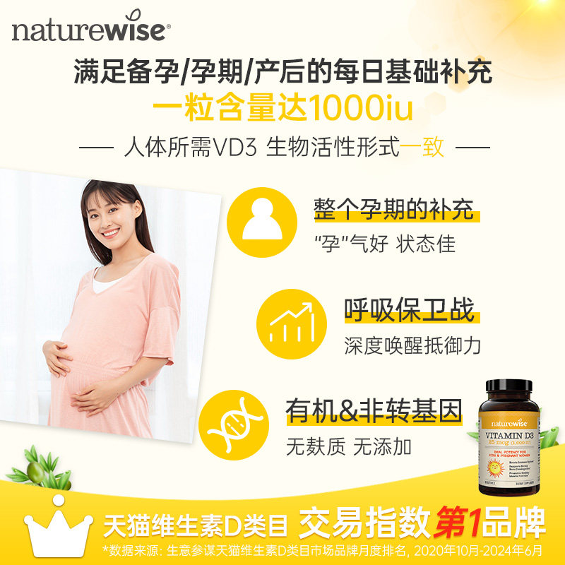 📚 Naturewise维生素d3阳光瓶1000iu孕妇维d备孕维生素d专用vd3低敏