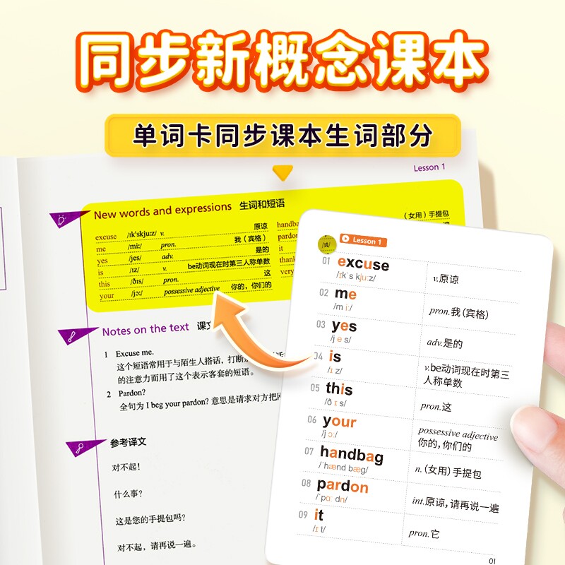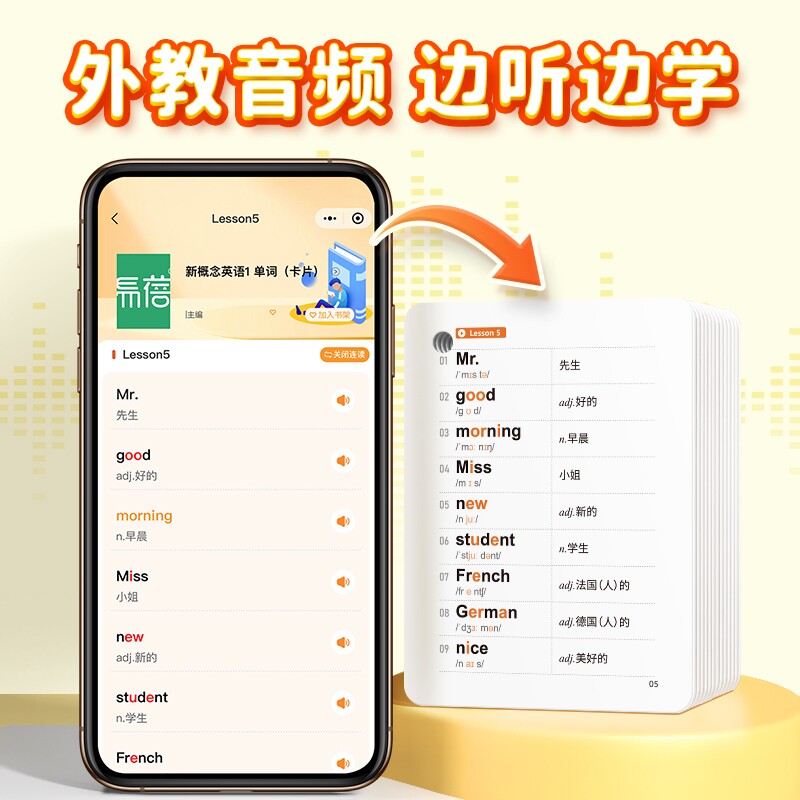 📚 新概念英语1-2一二册单词短语句型手卡同步课本单词背诵卡片中英对照新版单词随身记音标例句便携记忆手卡1