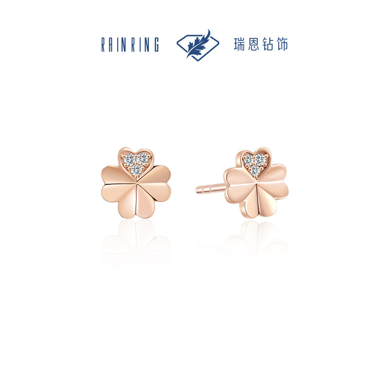 💖瑞恩钻饰18K金玫瑰金天然真钻耳钉,女神新年的浪漫之选!💖
