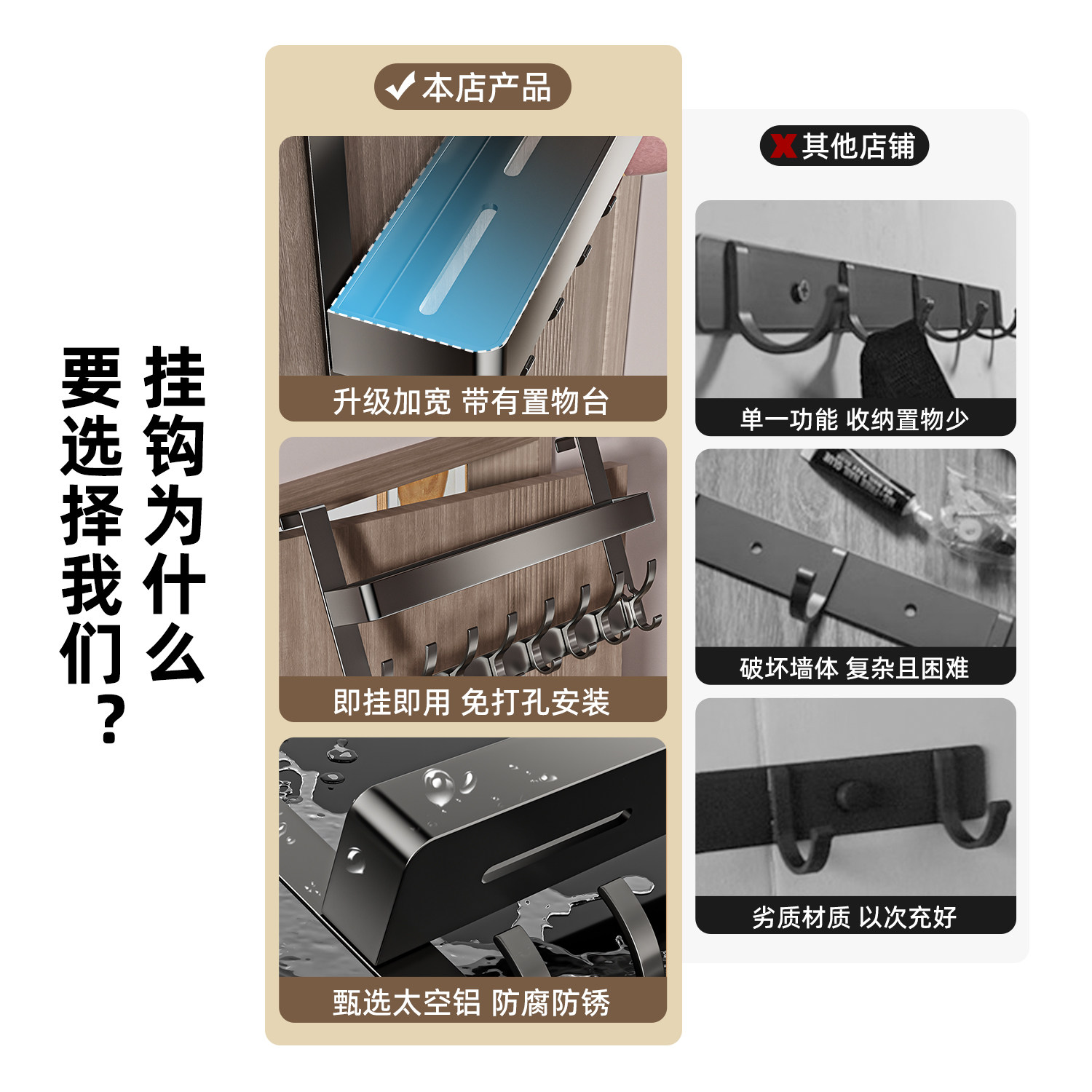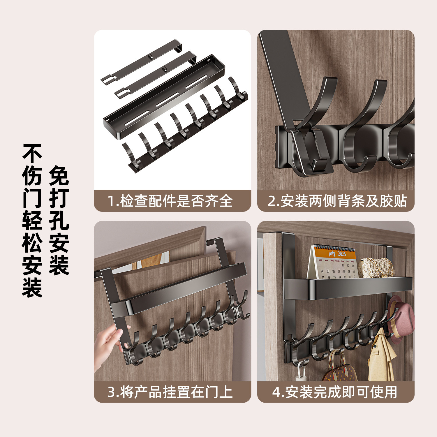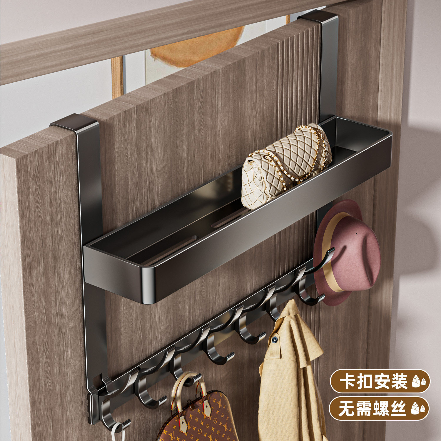 📚 太空铝门后挂钩通用免打孔挂衣架卧室衣服帽子书包挂架子收纳神器