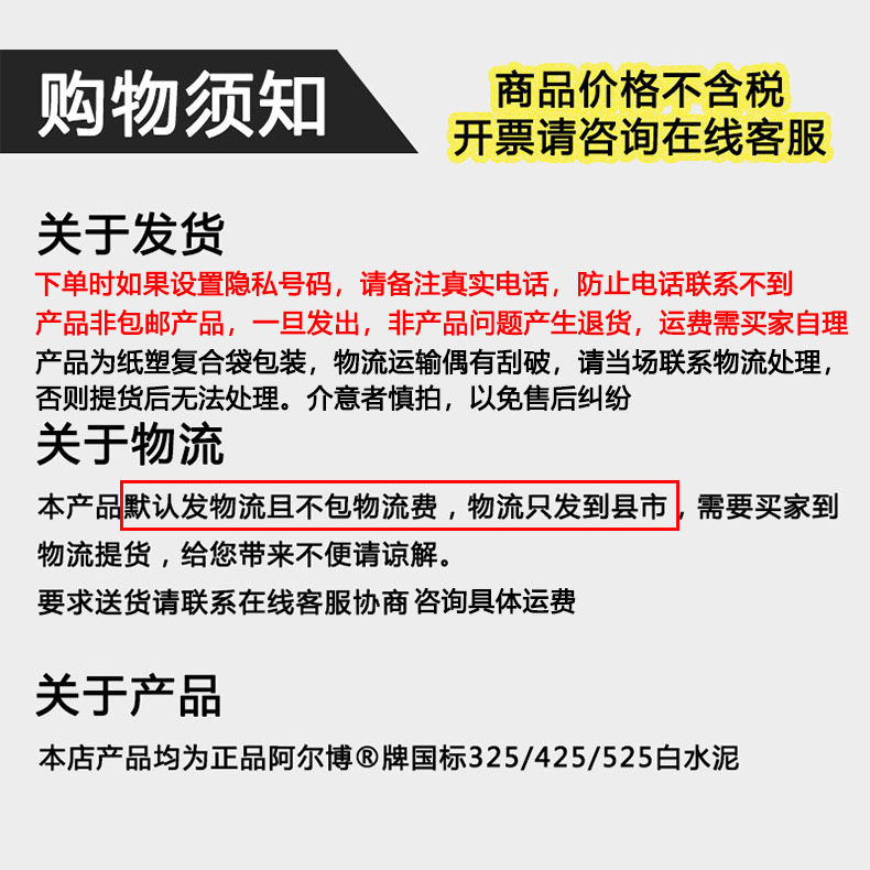📚 阿尔博白水泥50公斤325/425/525高强度白水泥国标白色硅酸盐水泥