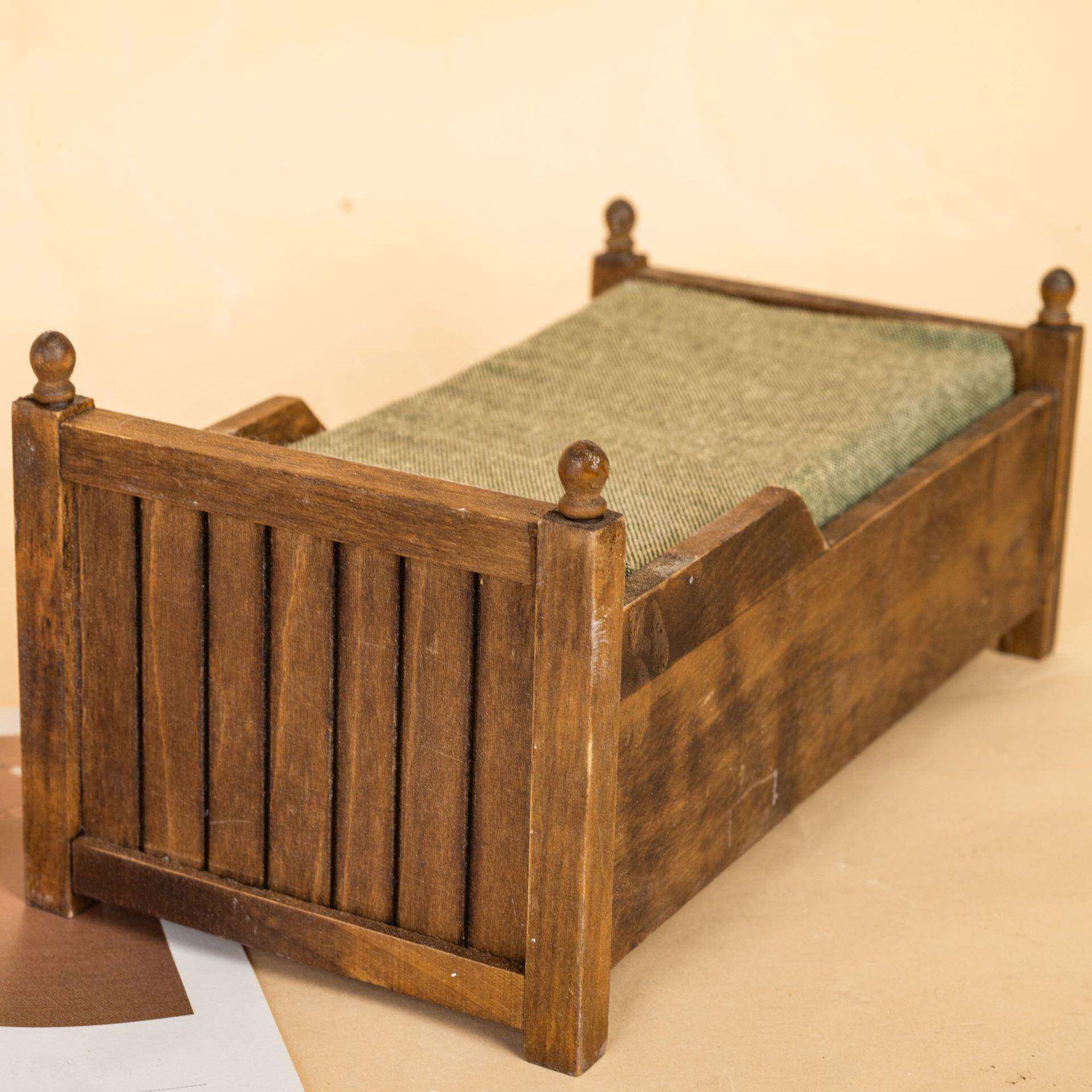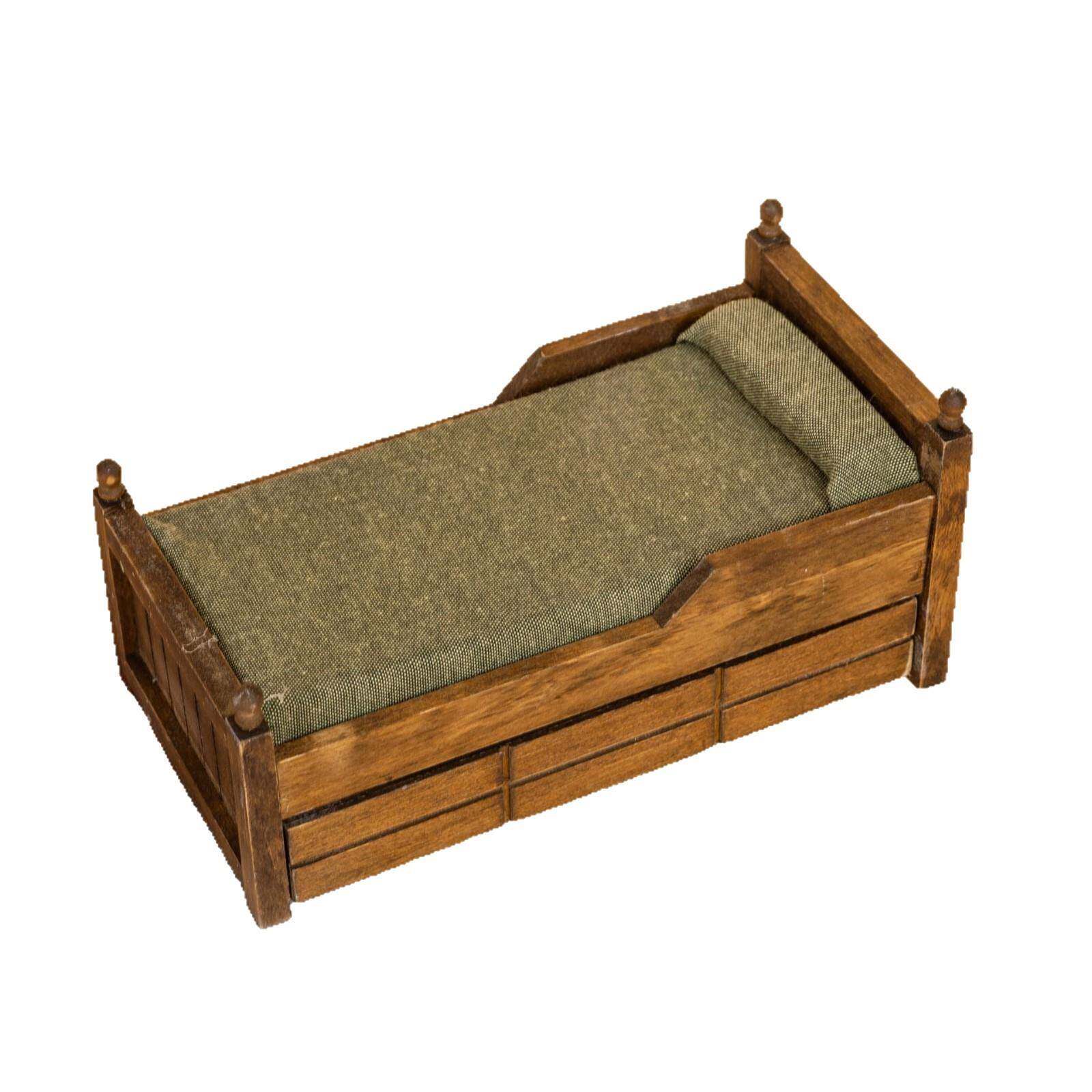 📚 1:12娃娃屋家具配件微缩场景复古床具dollhouse迷你木质单人床