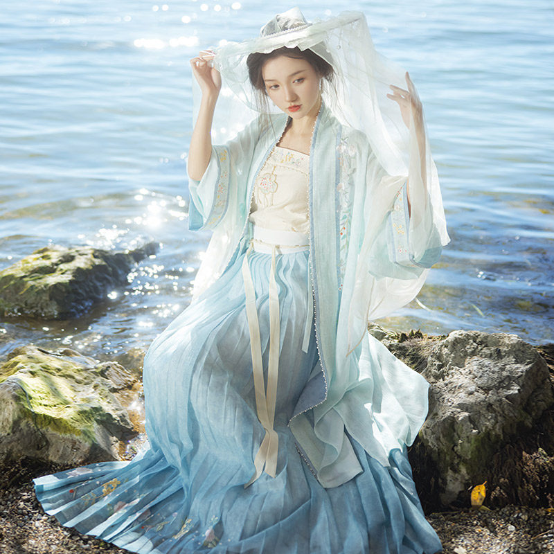 📚 【重回汉唐青女】国风改良吊带对襟长衫一片式褶裙宋制汉服女装春