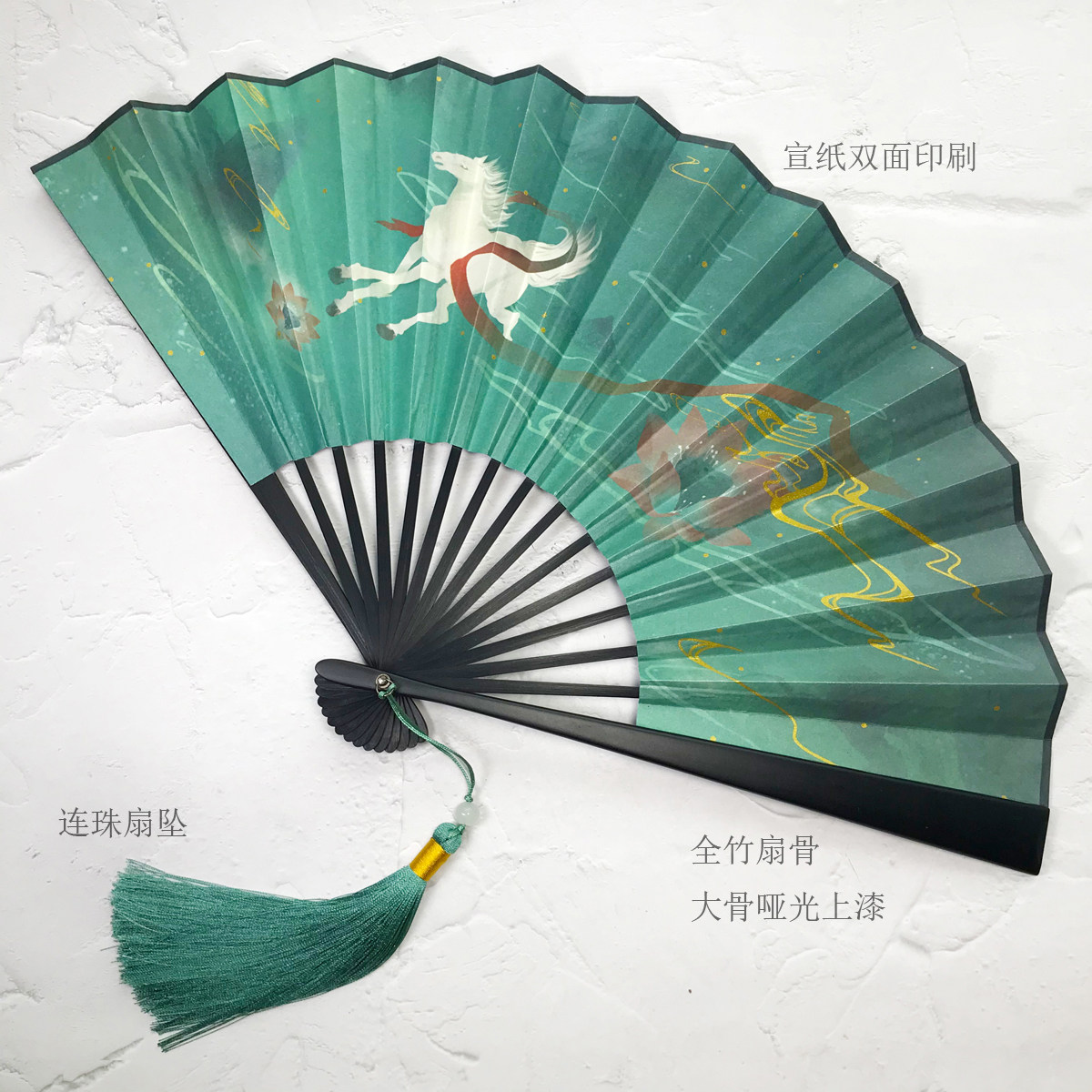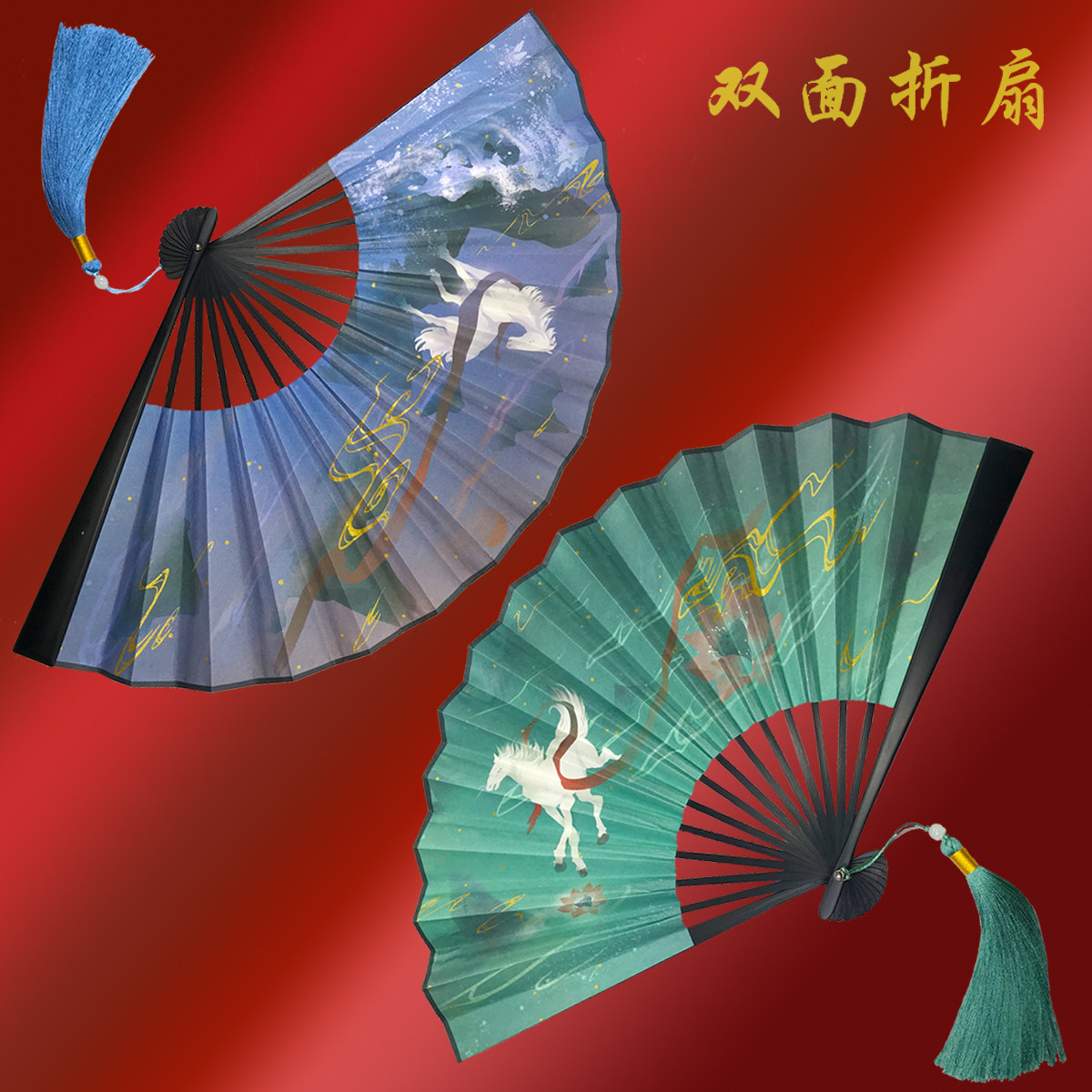 📚 以梦为马双面折扇复古风中国风全竹扇子男女汉服摄影拍照道具纸扇