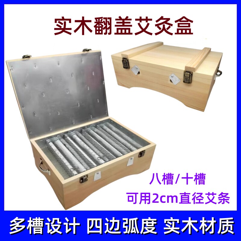 📚 大号艾灸盒实木制炙疗温灸工具槽型箱家用腹腰背部熏器具艾蒿条盒