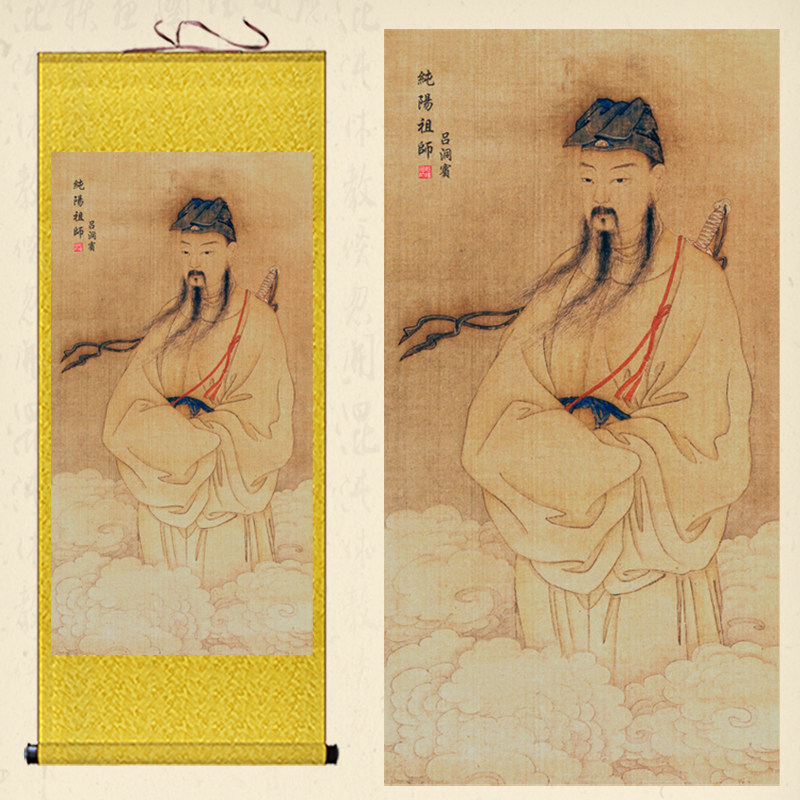 📚 吕洞宾画像挂画纯阳帝君绢布卷轴画全真派祖师爷丝绸画道场水陆画