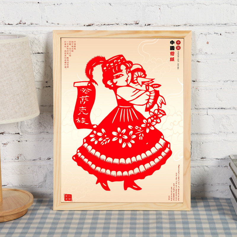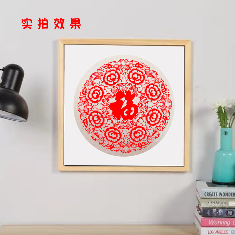 📚 手工剪纸相框挂墙画框福字窗花实木质外框装裱礼品装饰送老外