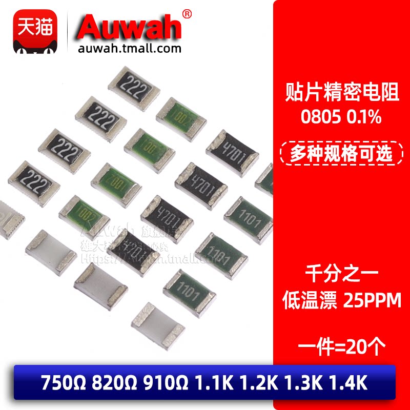 📚 0805千分之一高精密电阻0.1% 750 820 910R 1.1 1.2 1.3K 1.4K 欧