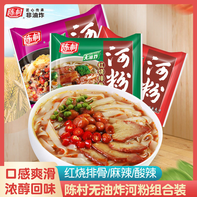 📚 陈村河粉非油炸方便面麻辣酸辣味红烧排骨免煮广东米粉免煮冲泡