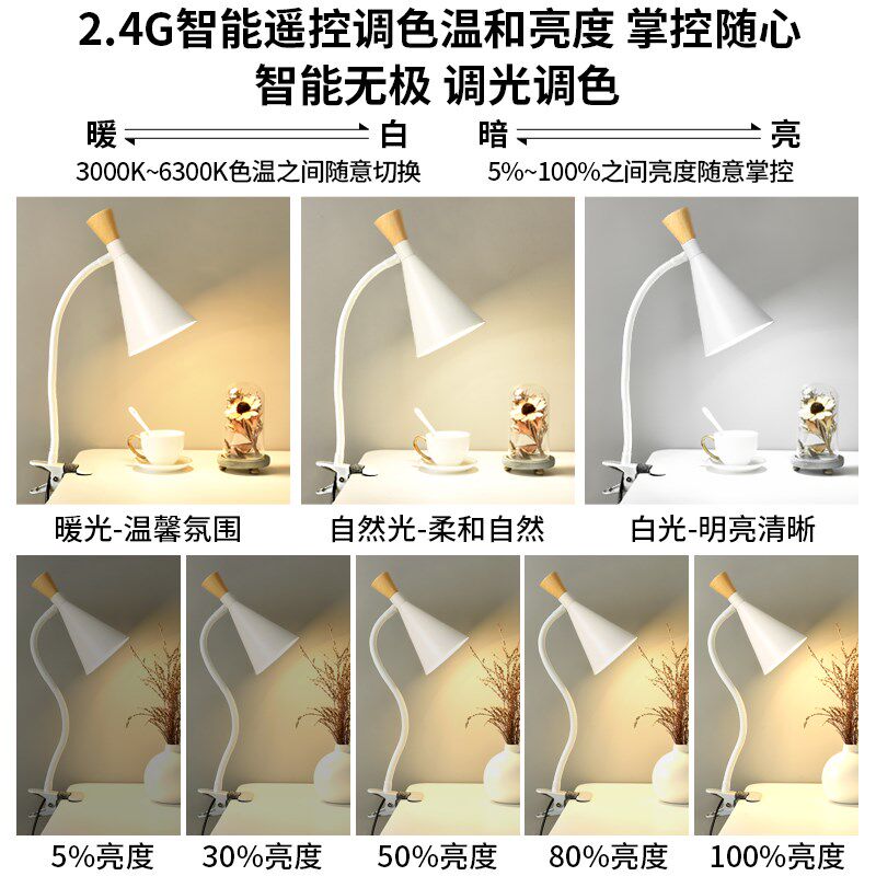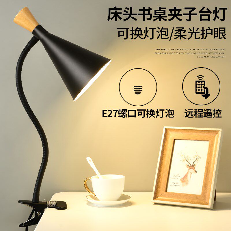 📚 老式床头看书可换灯泡台灯夹子式遥控调光插电书桌长杆臂护眼学习