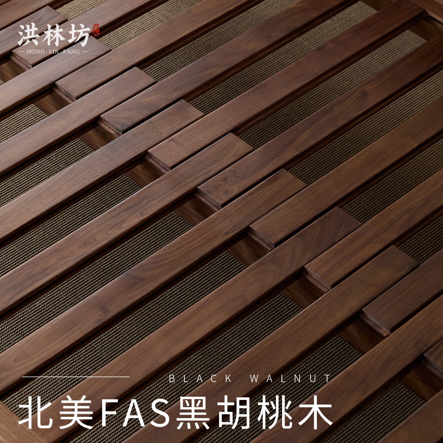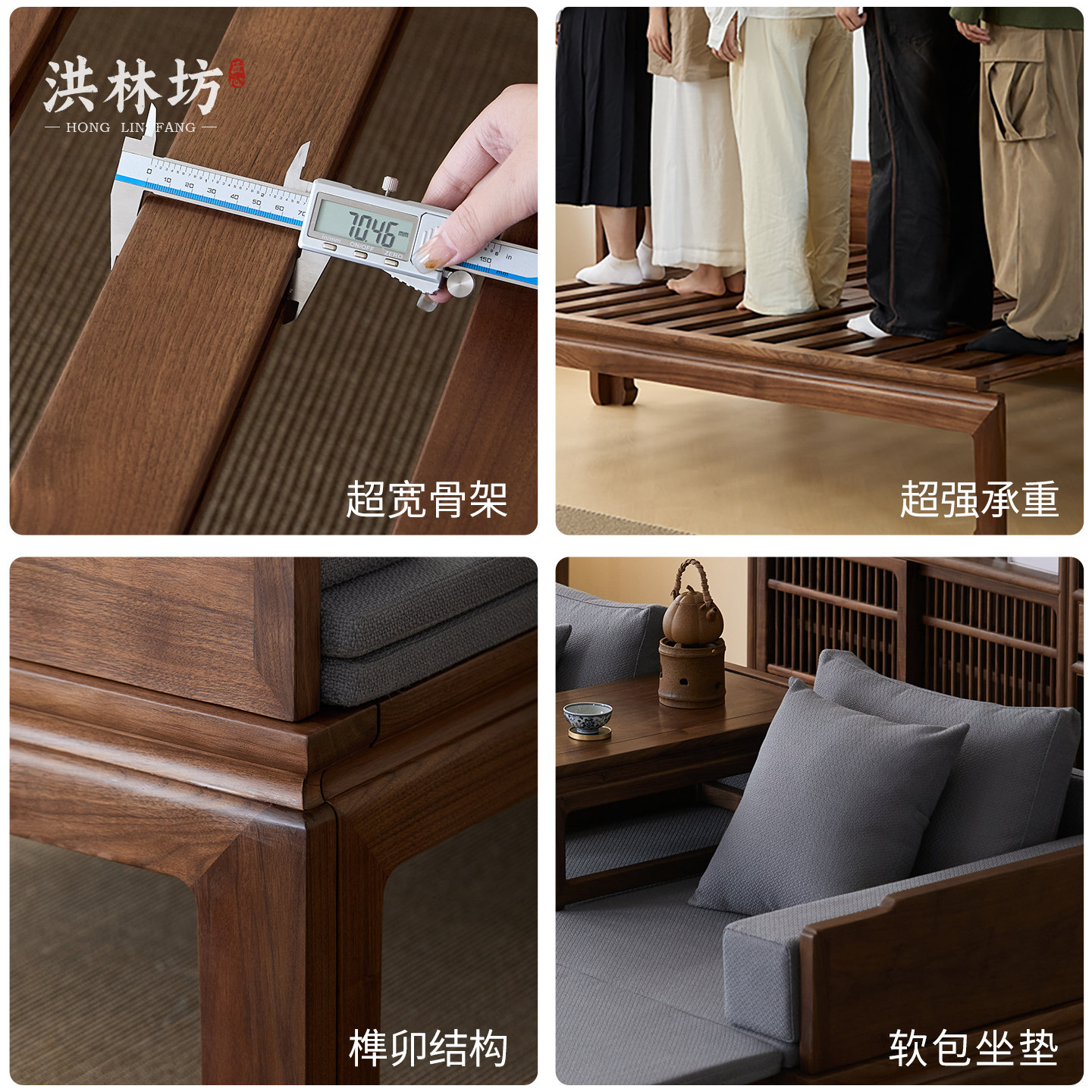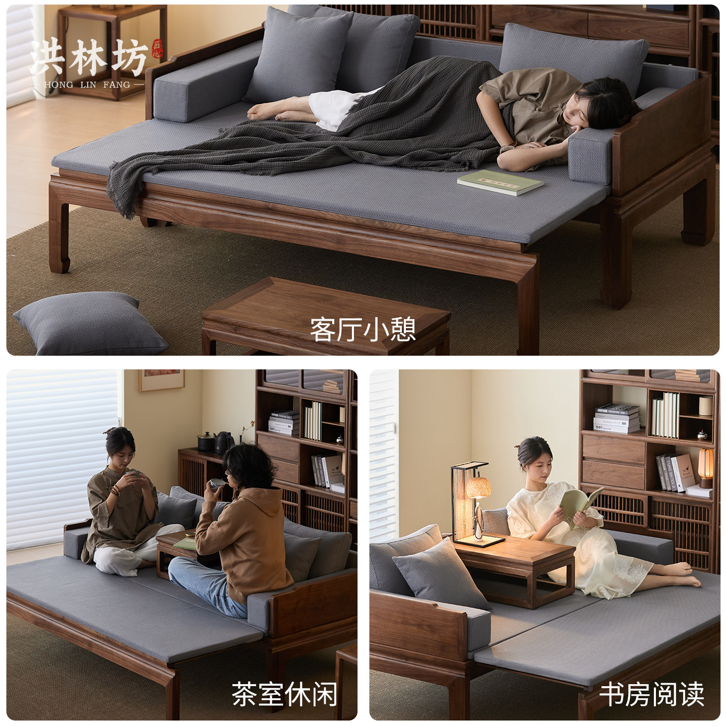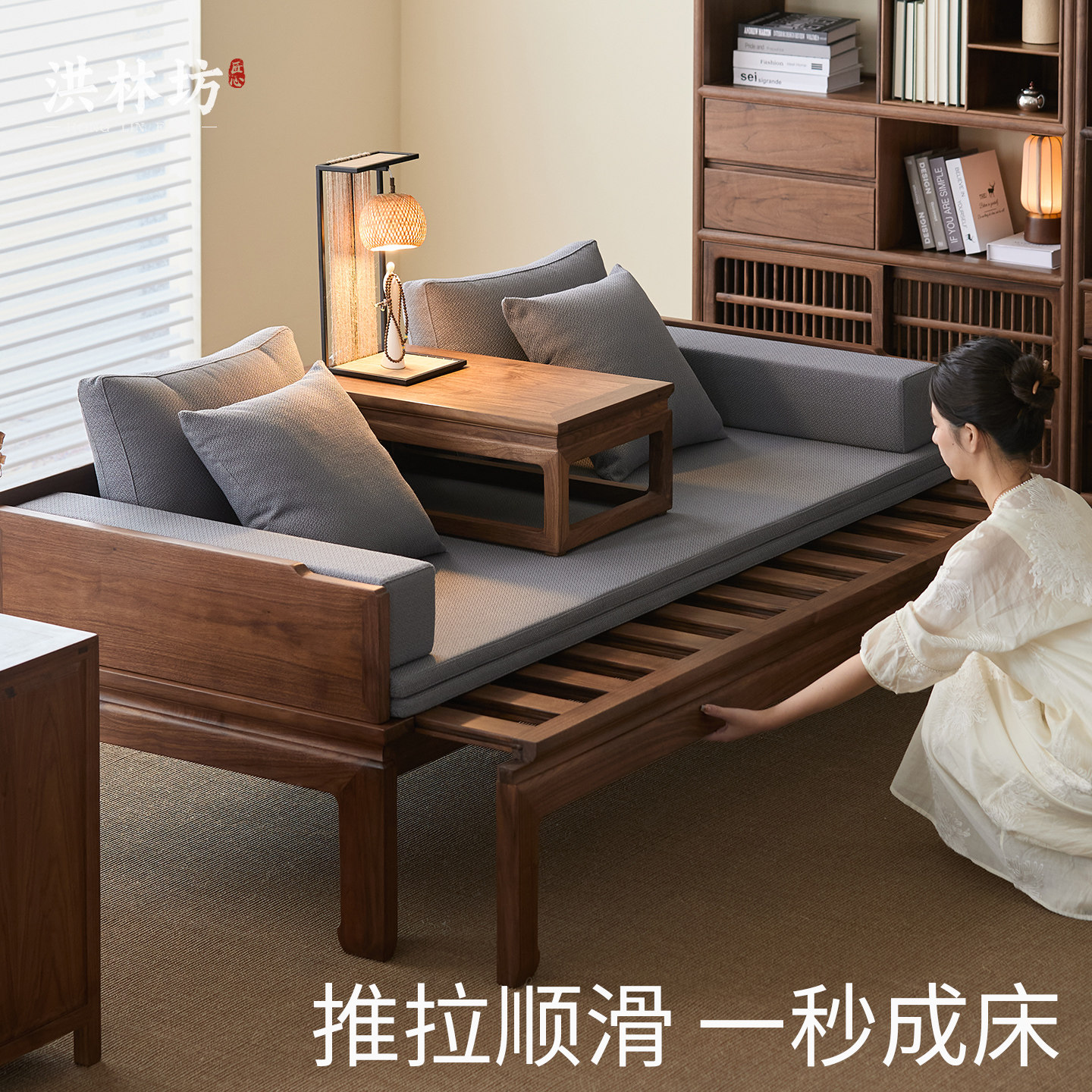 📚 洪林坊宋式美学黑胡桃木罗汉床新中式推拉卧榻客厅沙发红木床榻