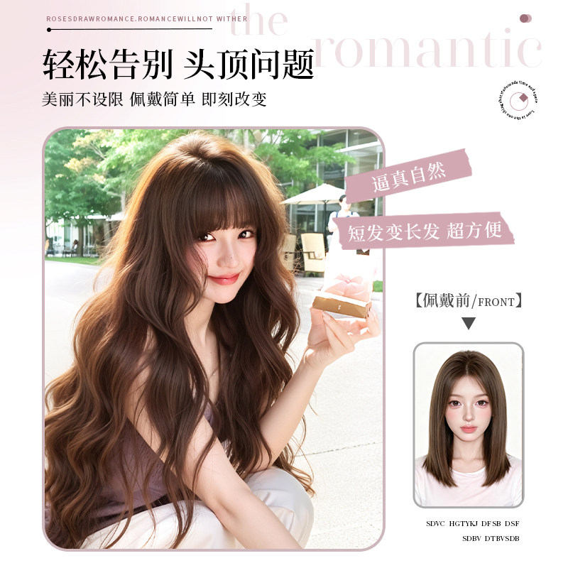 📚 不用戴发网假发女全头套仿真发头顶补发增发量水波纹长卷发假发套