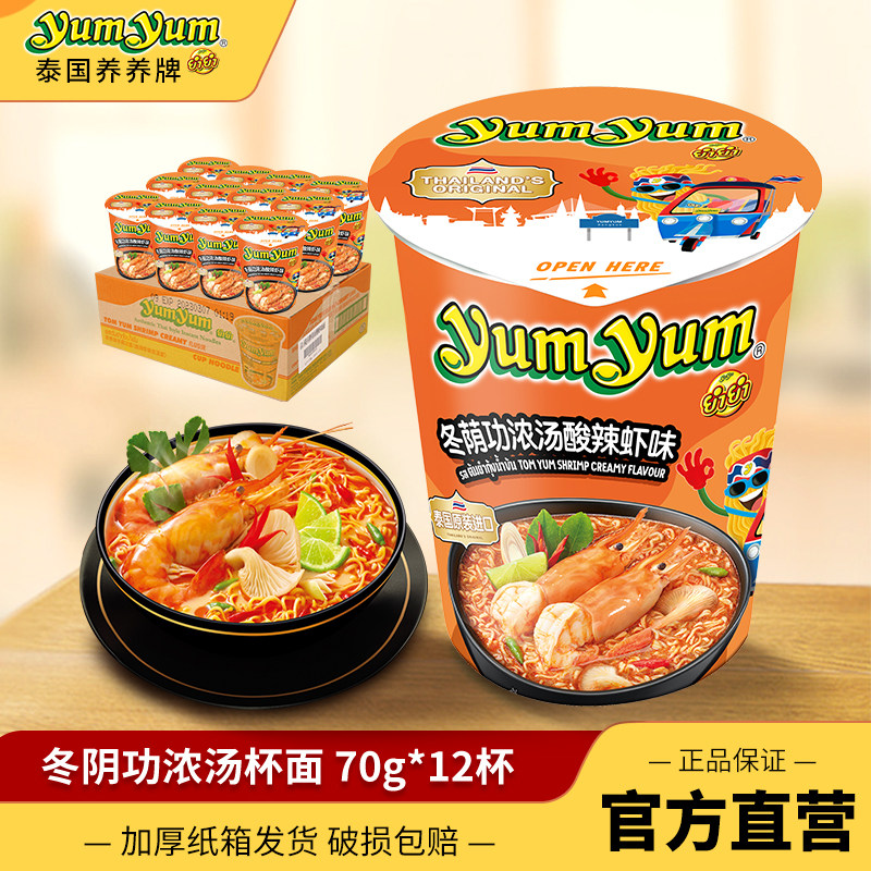 📚 整箱养养牌冬阴功浓汤面70*12杯泡面泰国桶装海鲜方便面宿舍速食