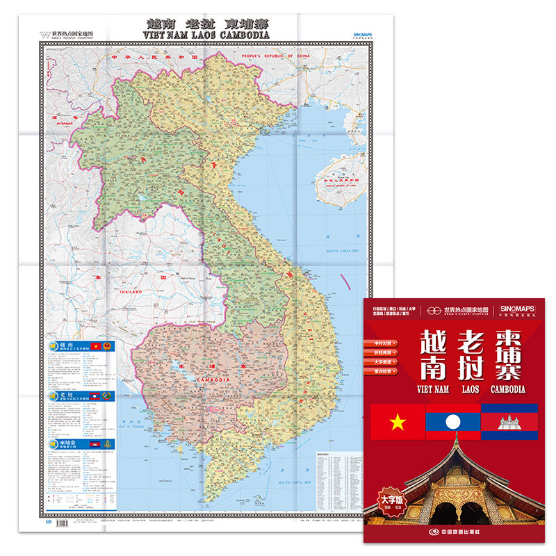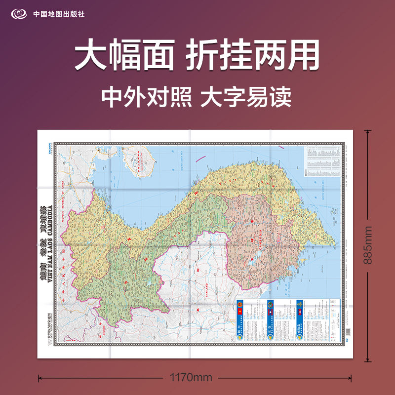 📚 2025越南老挝柬埔寨 地图 世界热点国家地图 国内出版 中外文对照 大字版 折挂两用、865mm×1170mm大全开地图