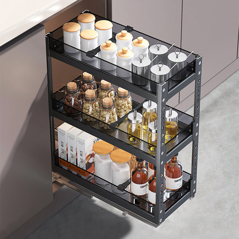 📚 洛班尼厨房调料拉篮橱柜窄柜极窄小尺寸置物架调味拉蓝收纳抽屉式