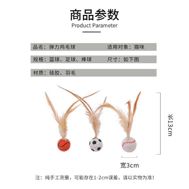 📚 网红鸡毛橡胶弹力球猫咪玩具追逐互动羽毛球自嗨解闷巡回球猫用品