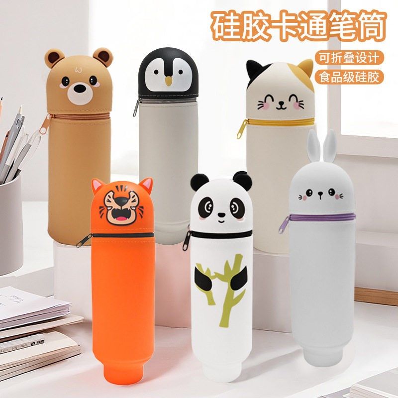 📚 精选硅胶伸缩笔筒可爱卡通笔袋文具袋学生大容量铅笔盒多功能文具