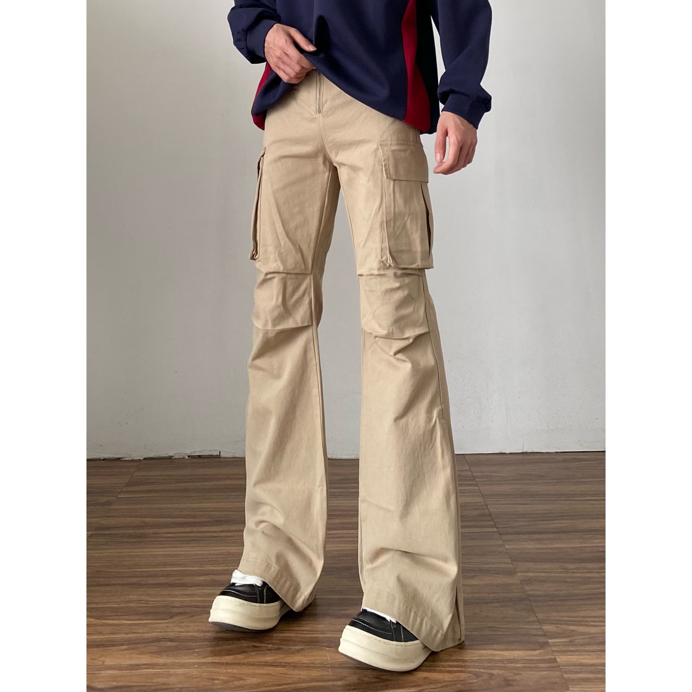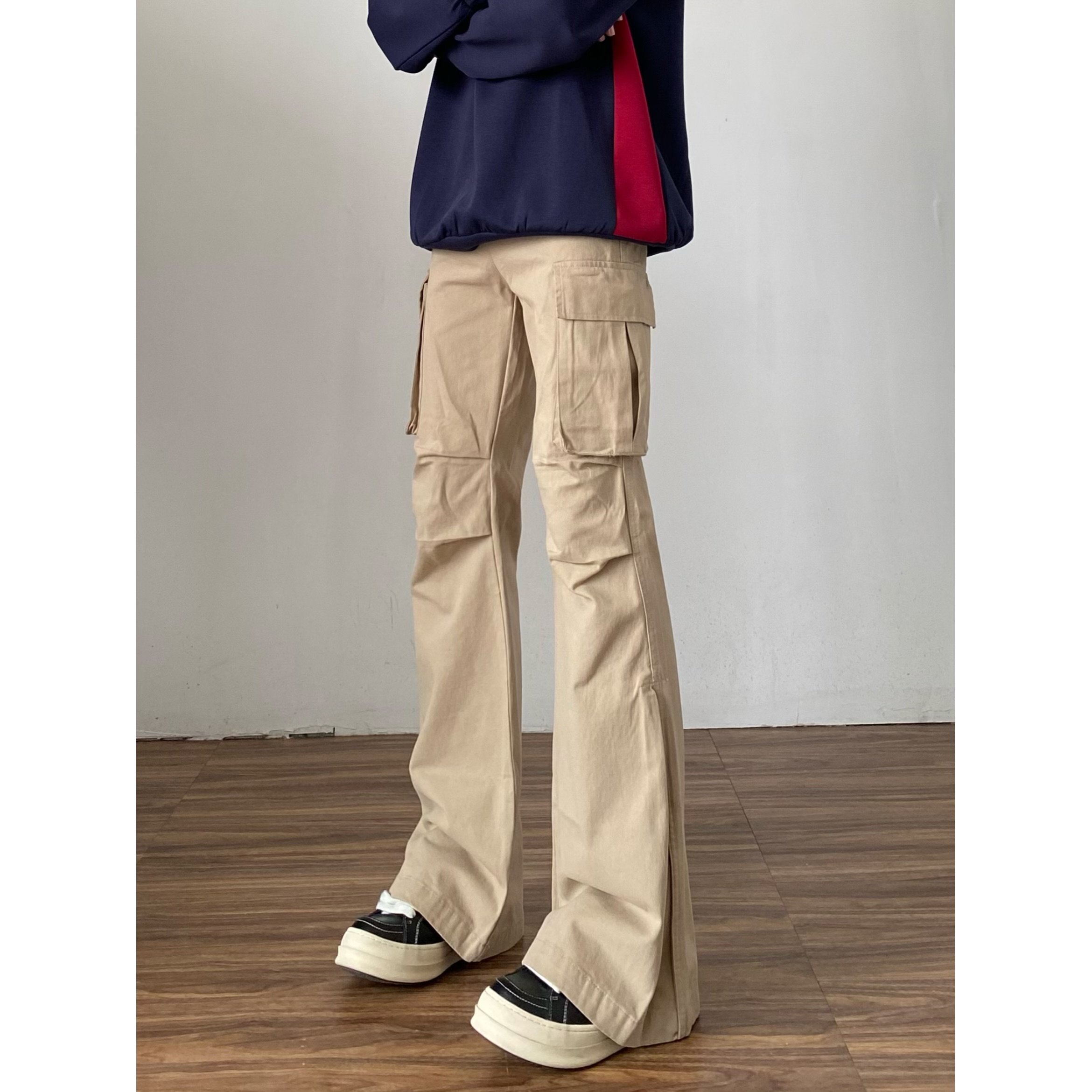 📚 白色修身微喇工装裤男潮美式高街vibe喇叭巨好看休闲加长裤子秋季