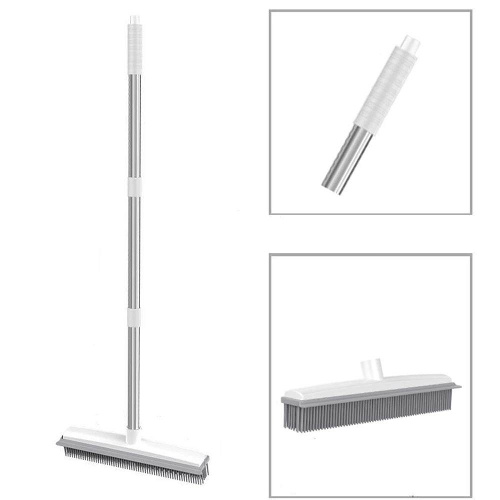 📚 Rubber Broom Carpet Rake with Squeegee Long Handle for Pet H