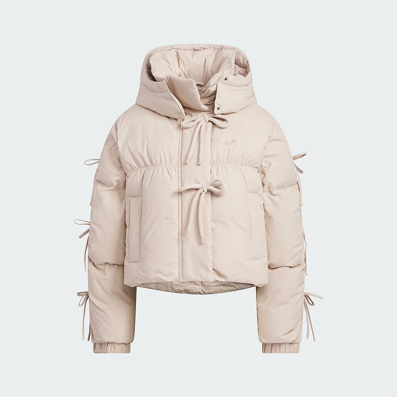 📚 Adidas阿迪达斯三叶草女刺绣logo蝴蝶结连帽保暖短款羽绒服KC2610