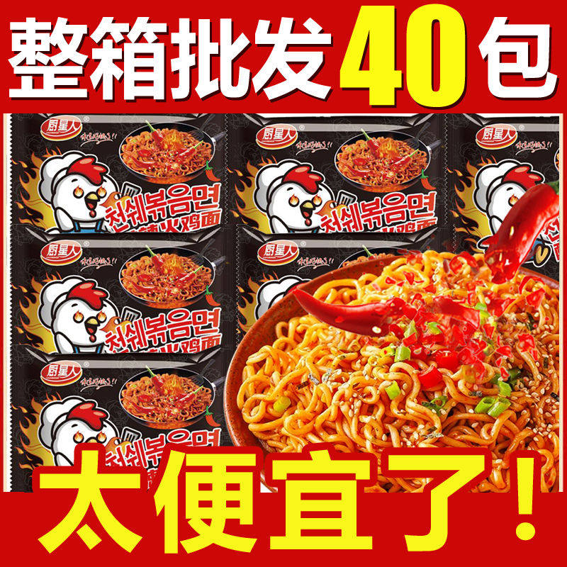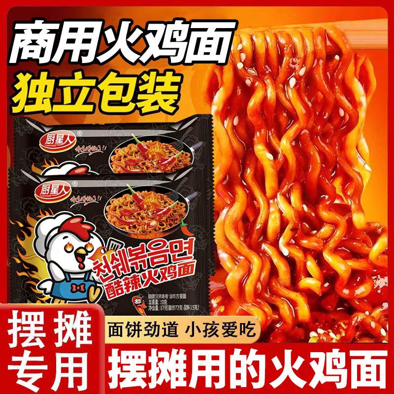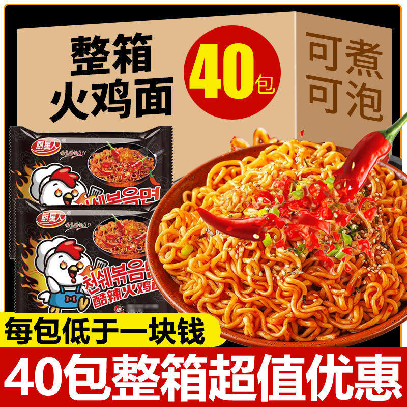 📚 爆辣火鸡面粗面韩式风味干拌面方便面泡面整箱商用批发零食夜速食