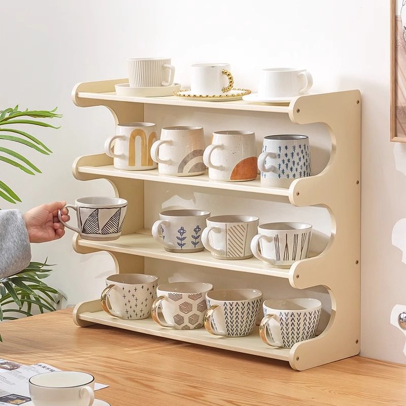 📚 桌面杯子收纳置物架办公室工位多层储物架杯架茶具水吧咖啡餐边柜