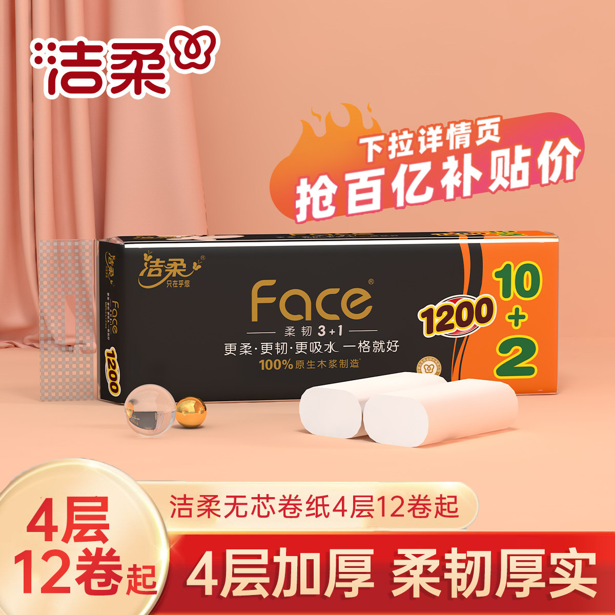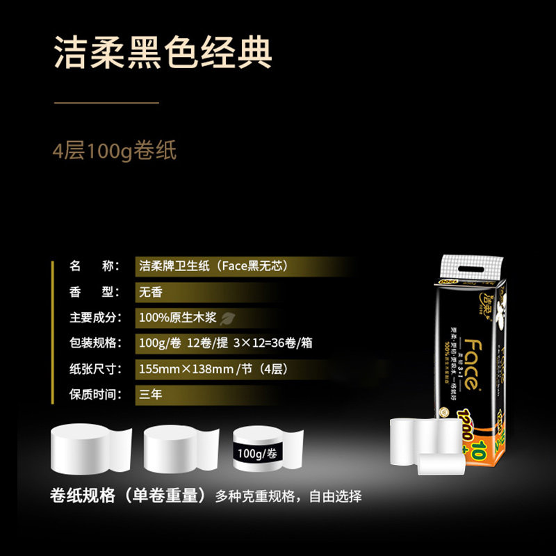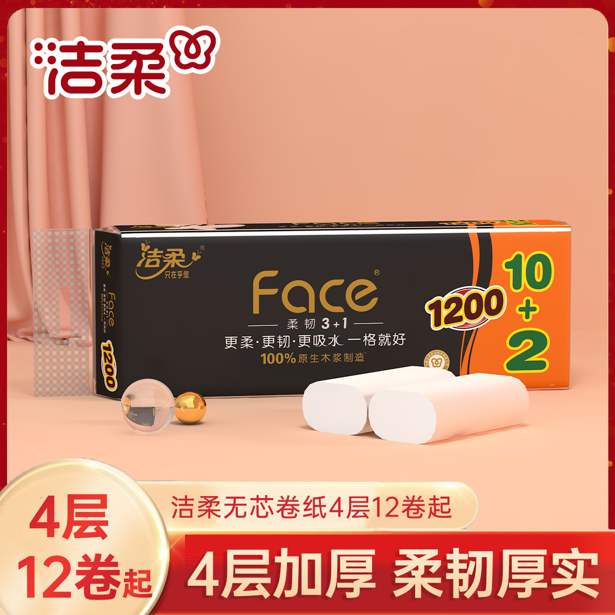 📚 洁柔纸巾擦手纸卷纸卫生纸无芯卷纸加厚厕纸12卷整提家庭实惠装