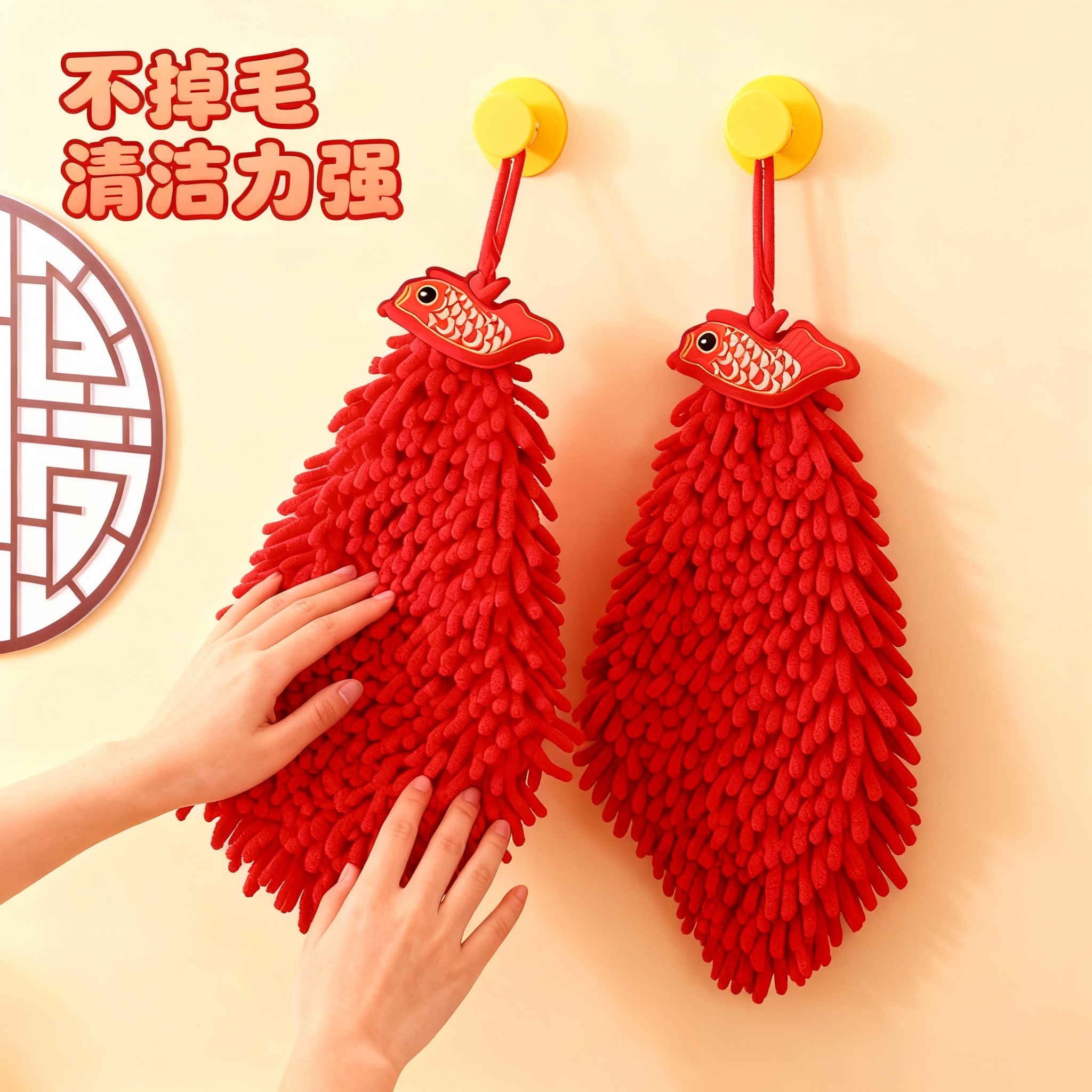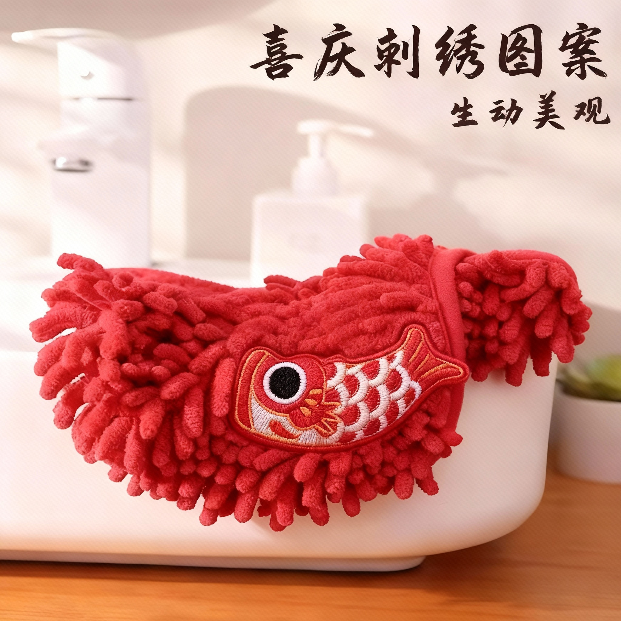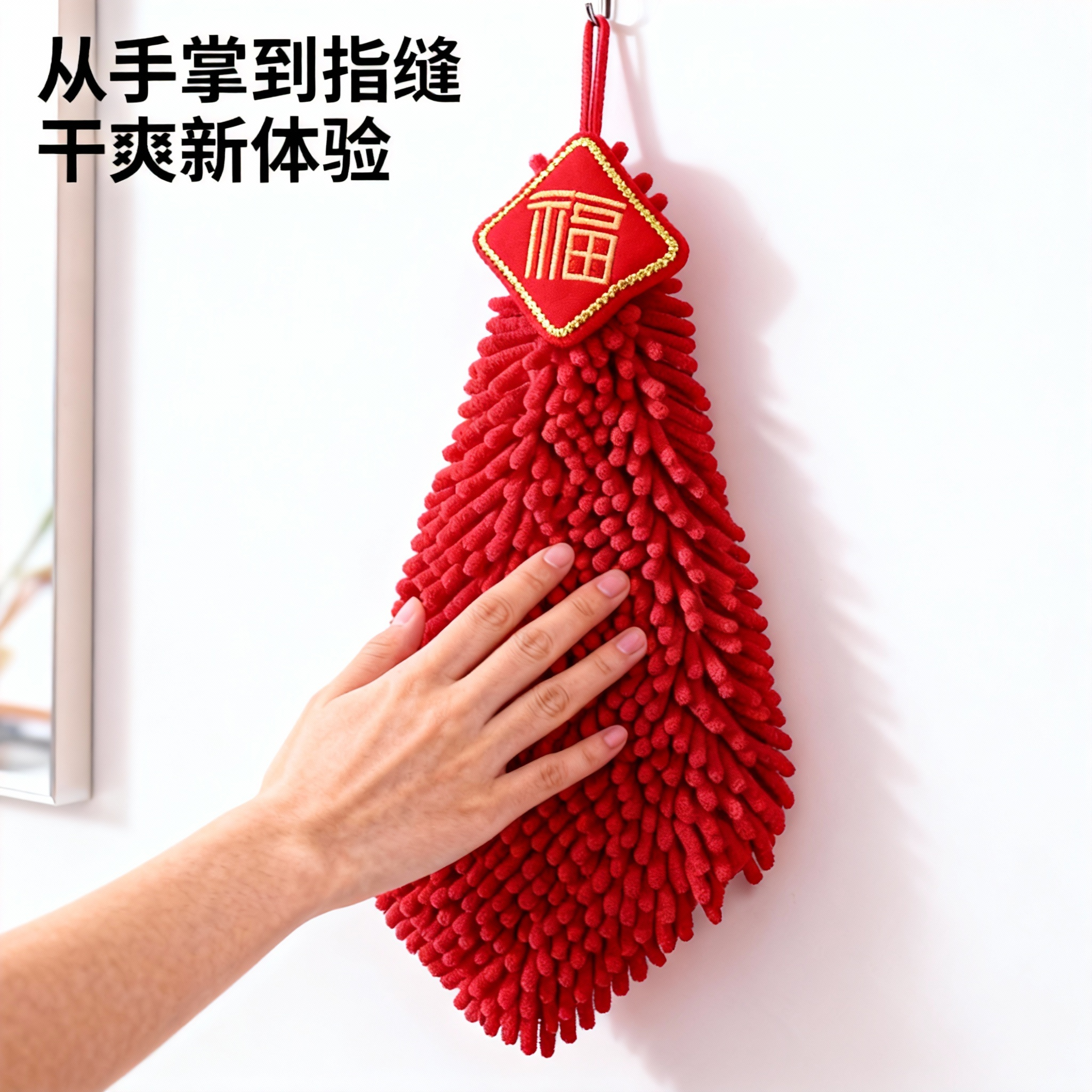 📚 国潮马年擦手巾挂式吸水不掉毛结婚红色喜庆卫生间厨房家用大毛巾
