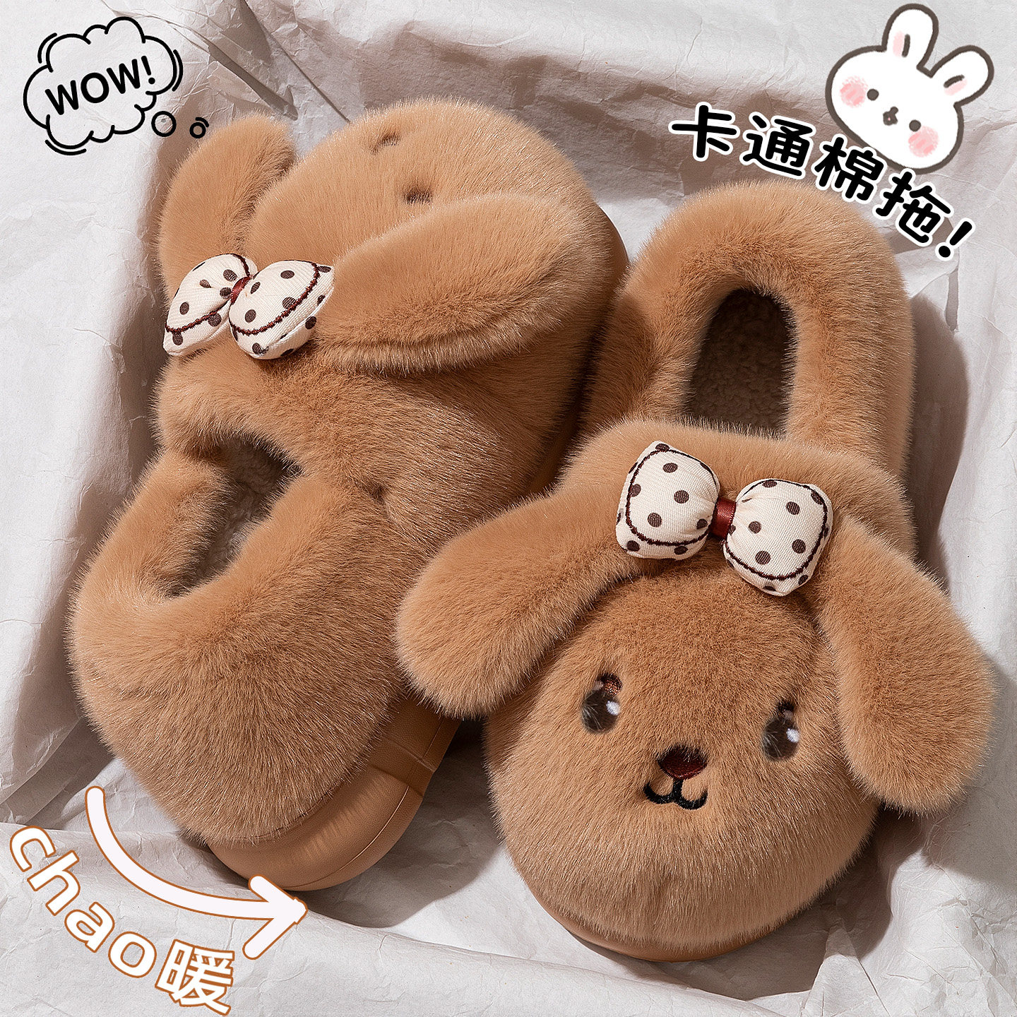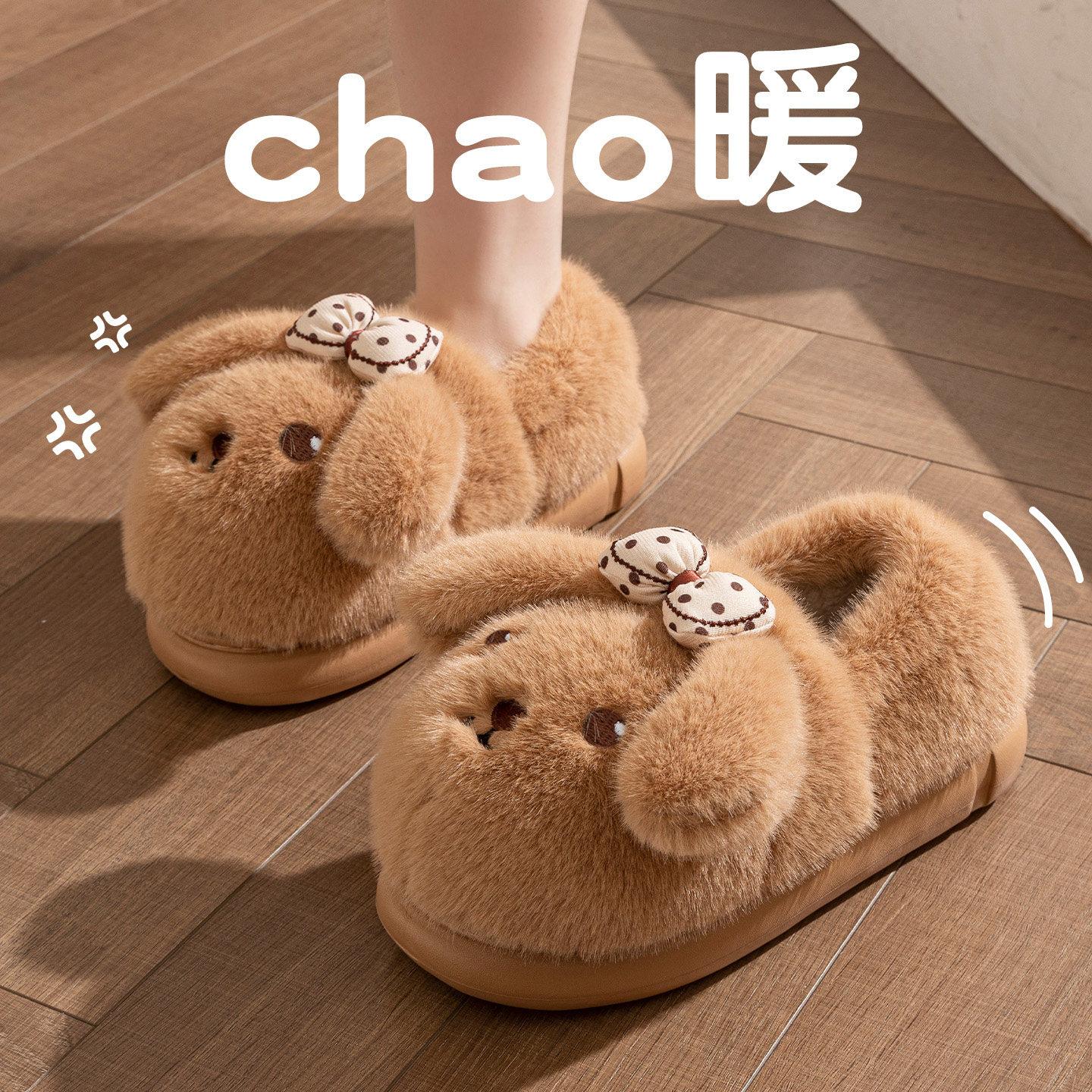 📚 小狗棉拖鞋女款包跟2025新款冬季毛绒厚底可爱家居室内保暖月子鞋