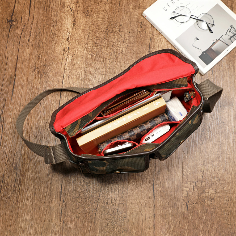 📚 美式复古迷彩油蜡帆布单肩斜挎包男士户外休闲重磅复古伞兵邮差包
