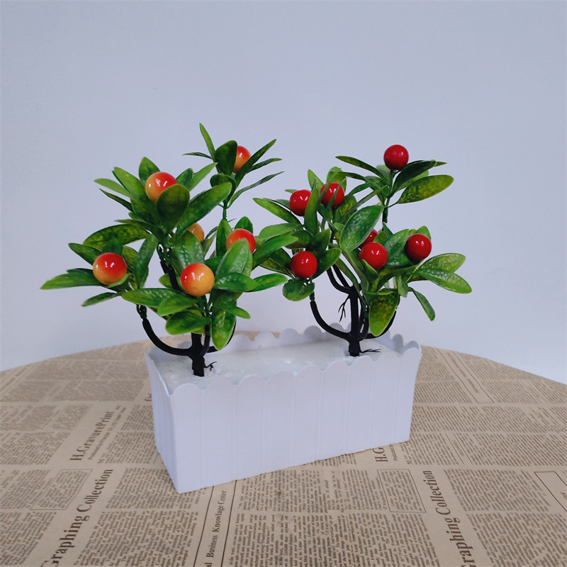 📚 仿真水果树植物盆景小盆栽办公室装饰塑料发财桔子金橘果实树摆件