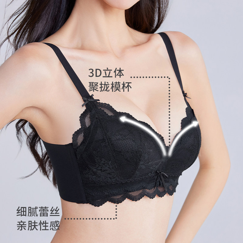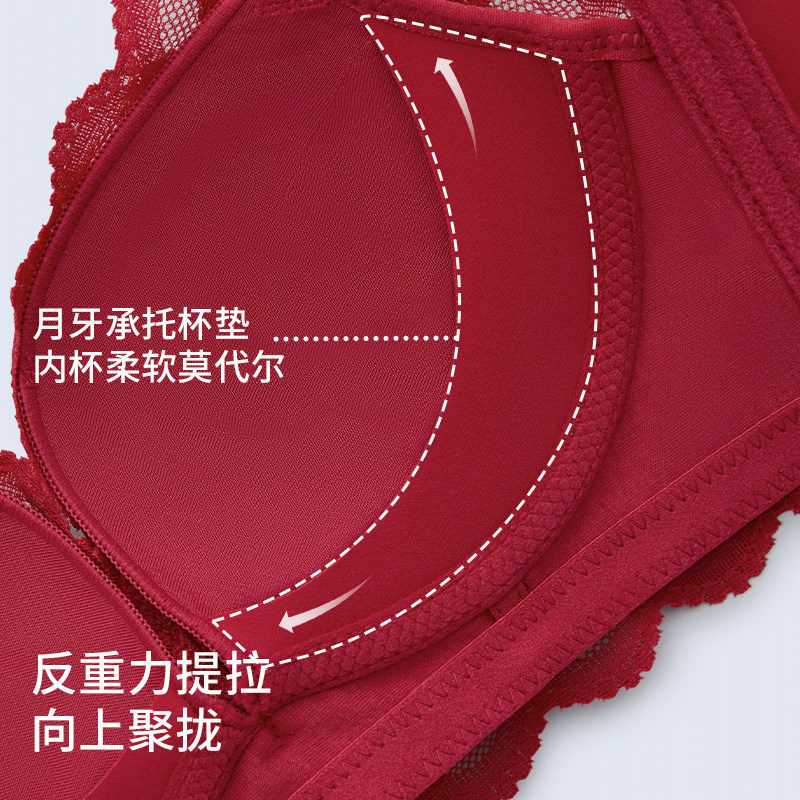 📚 【小胸聚拢】68蕾丝内衣女秒升杯超柔软面料舒适防下垂红色文胸罩