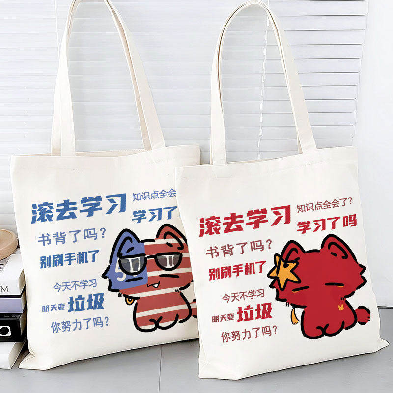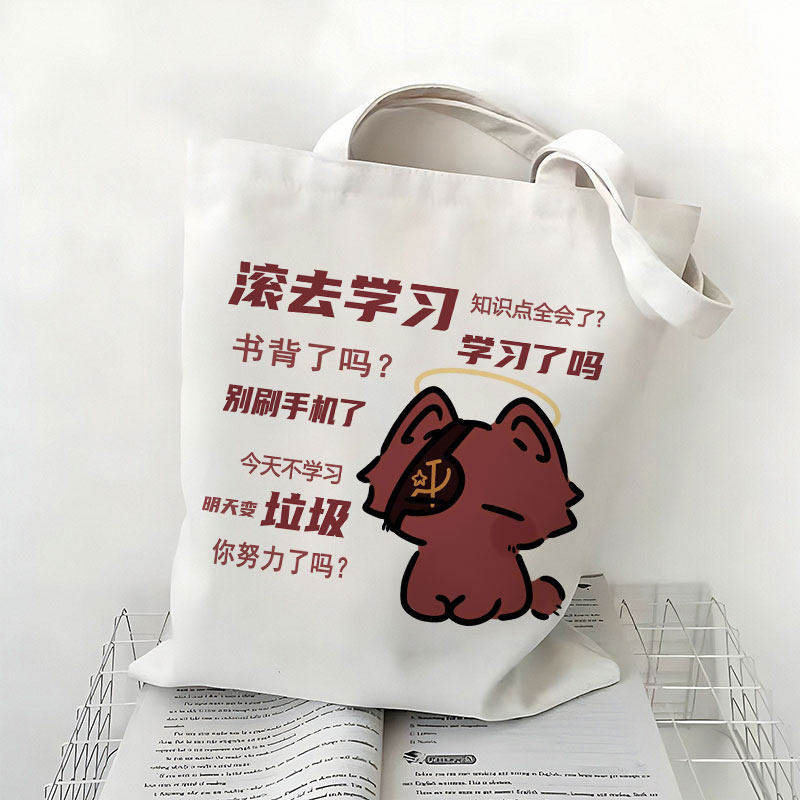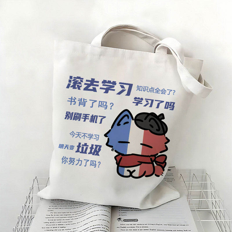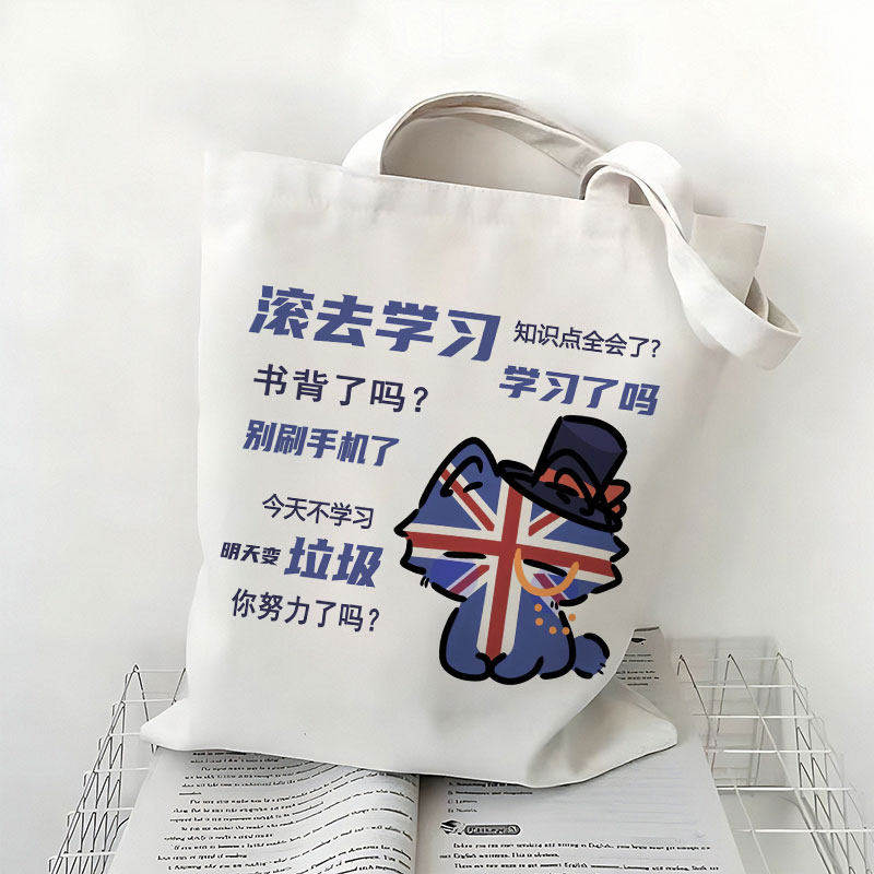 📚 励志学习国拟五常CH瓷美俄法英周边帆布包学生大容量手提袋单肩包