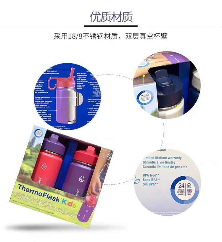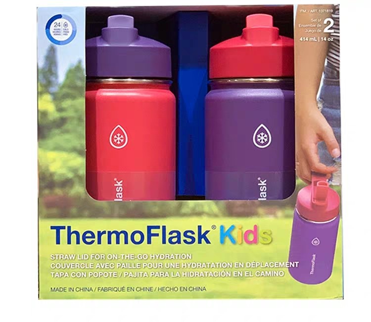 📚 2个装美国THERMOFLASK赛默飞儿童保温保冷吸管杯414ml*双层不锈钢