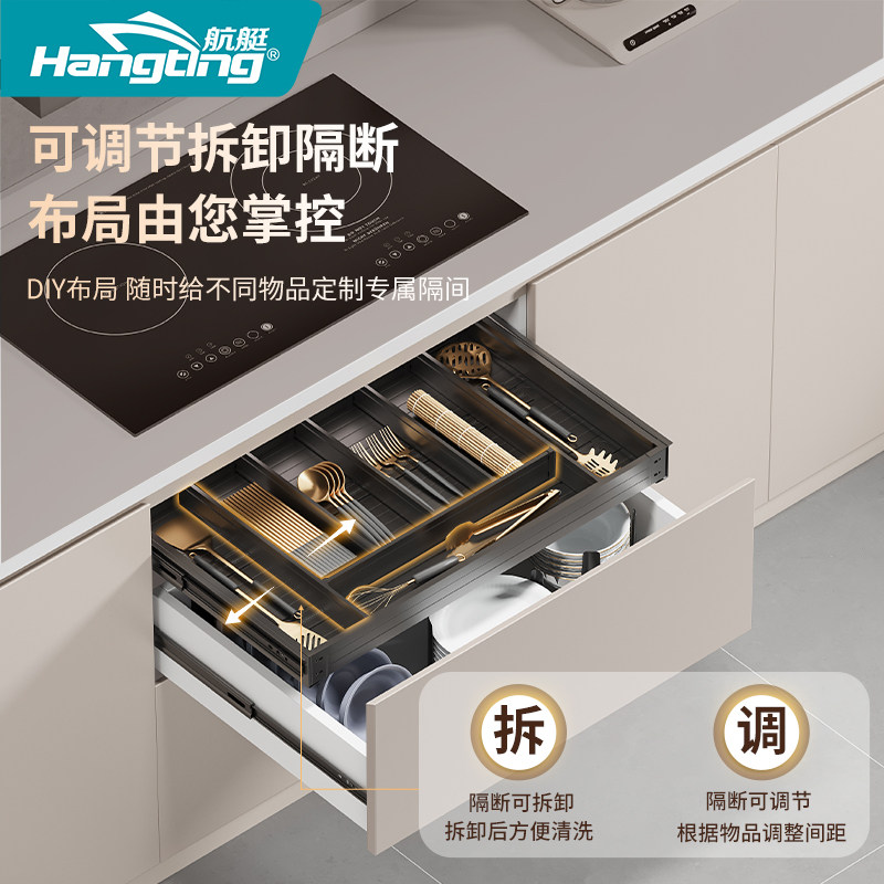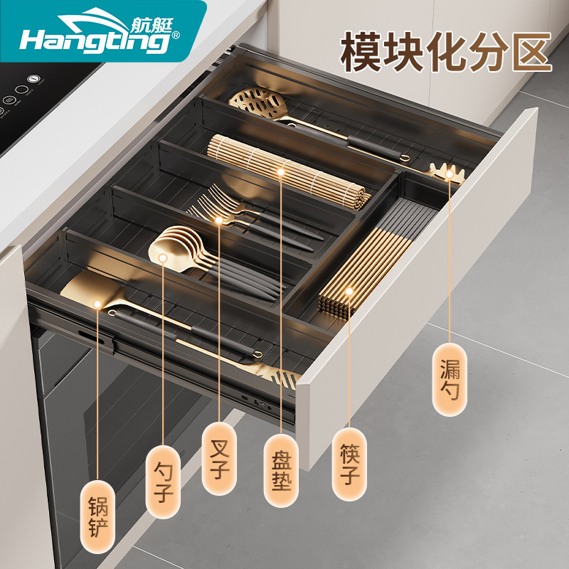📚 厨房橱柜洗碗机上方薄抽屉筷勺子刀叉盘抽中抽浅柜超薄工具抽拉篮