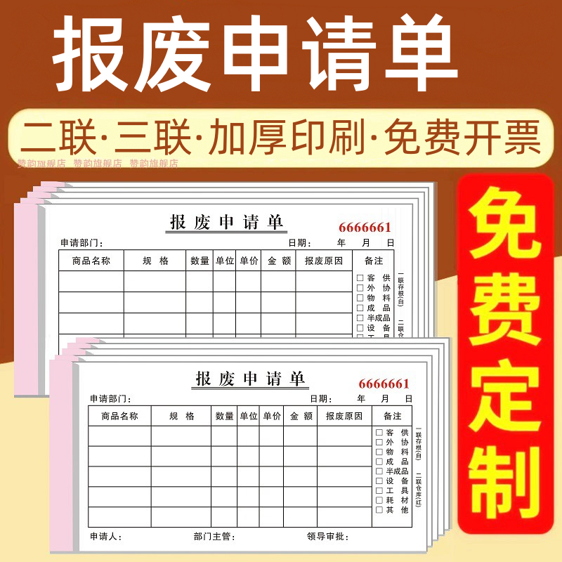 📚 2本报废单三联报废申请单定制报损单二联3领料工厂部门订做补料物料本无碳复写物品报损单物料报废单支持定制