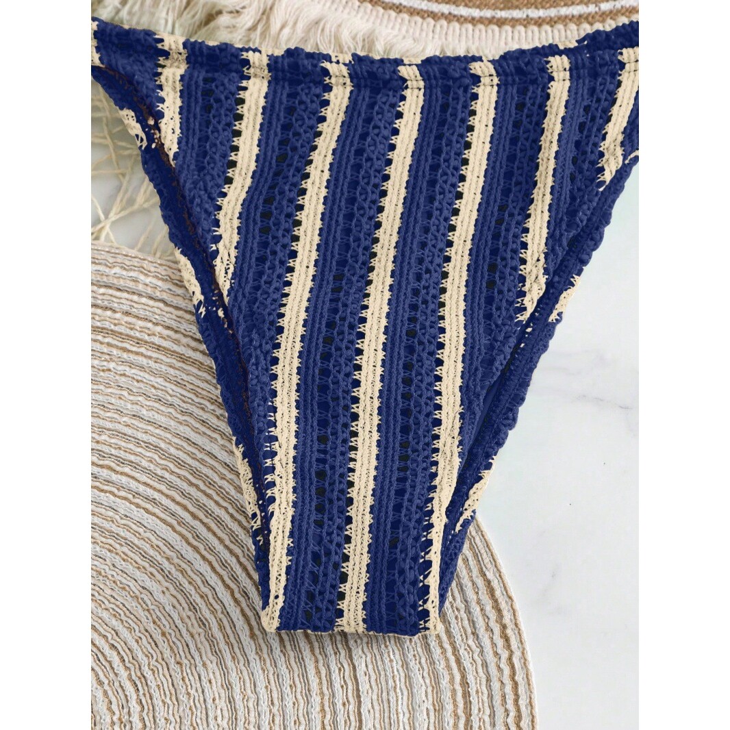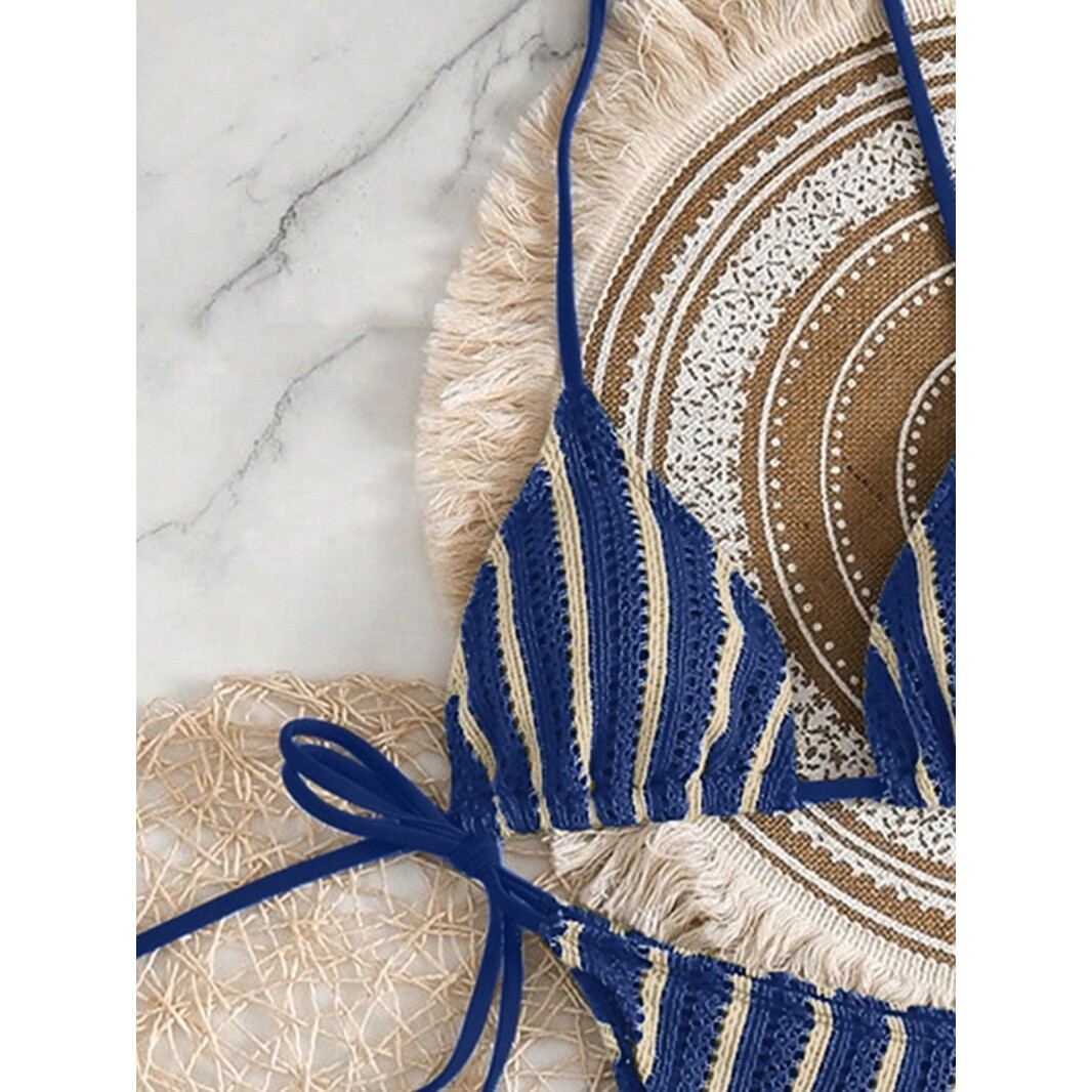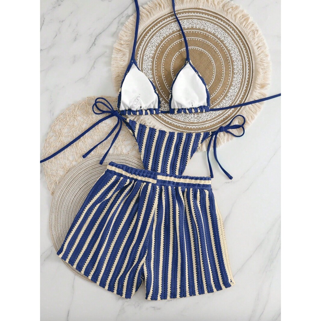 📚 Separate swimming suit时尚性感系带条纹三件套泳装比基尼bikini