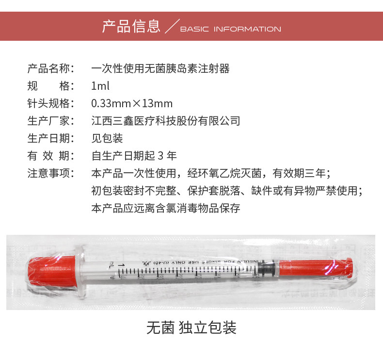 📚 U40一次性无菌胰岛素注射器笔1ml糖尿病注射针头0.3*13针器针管QC