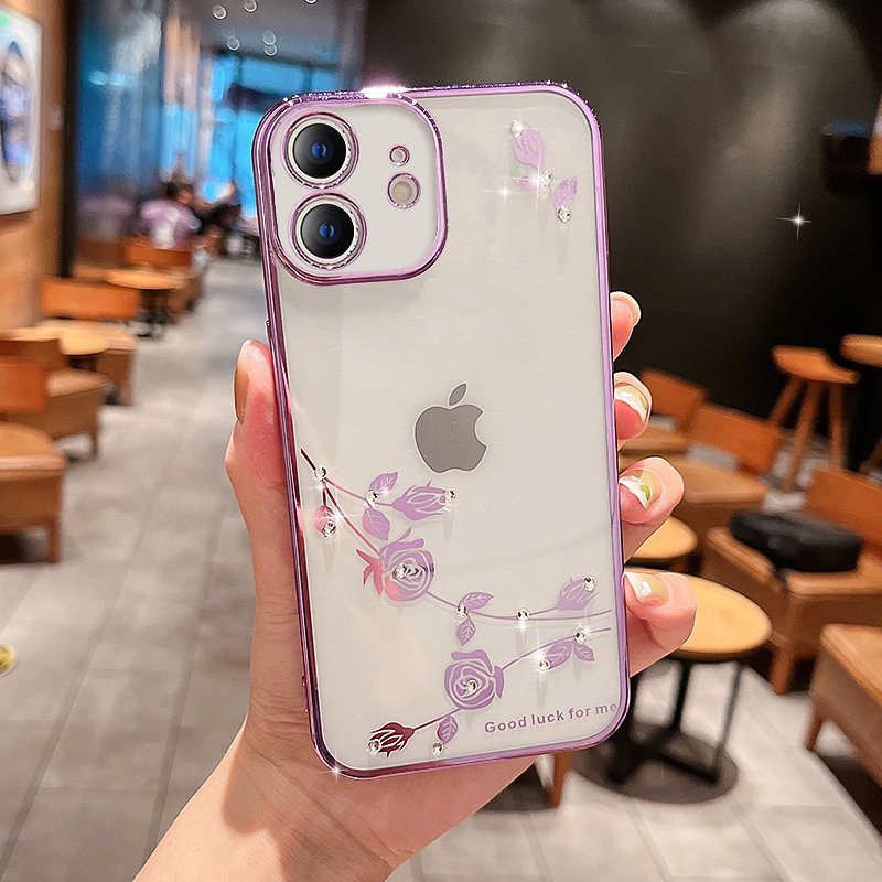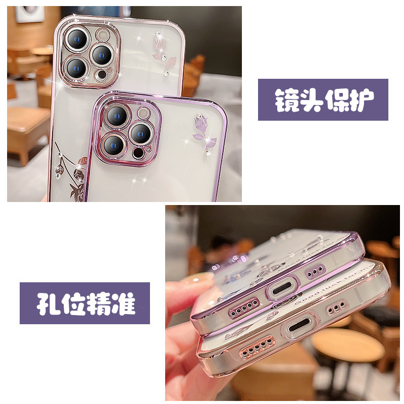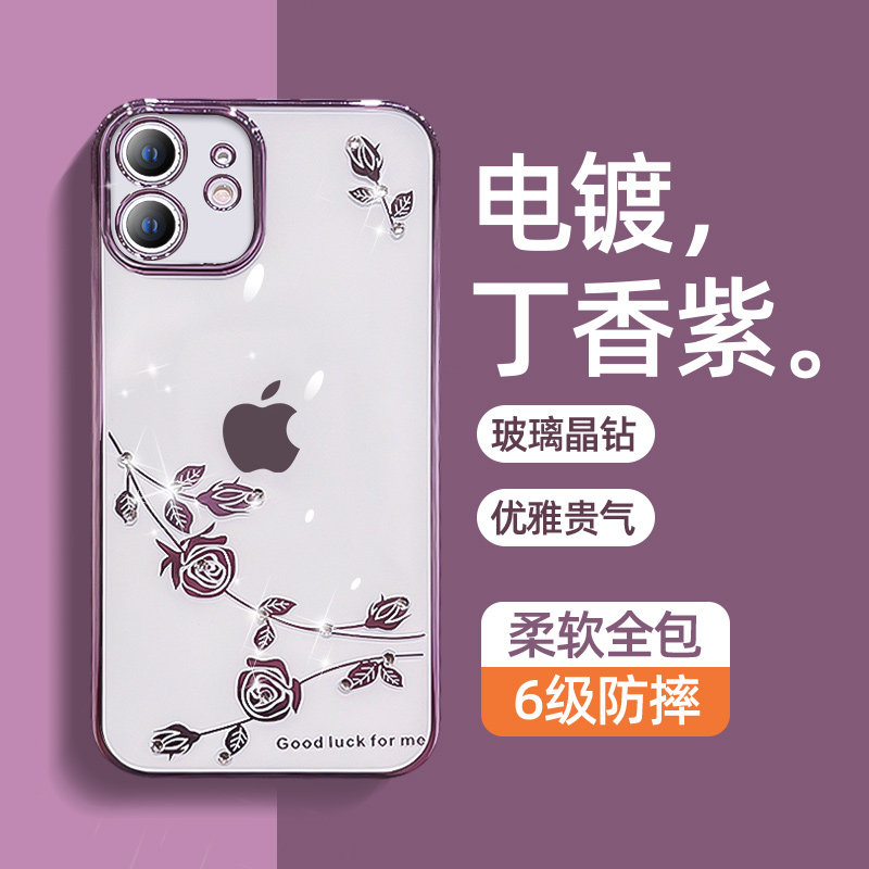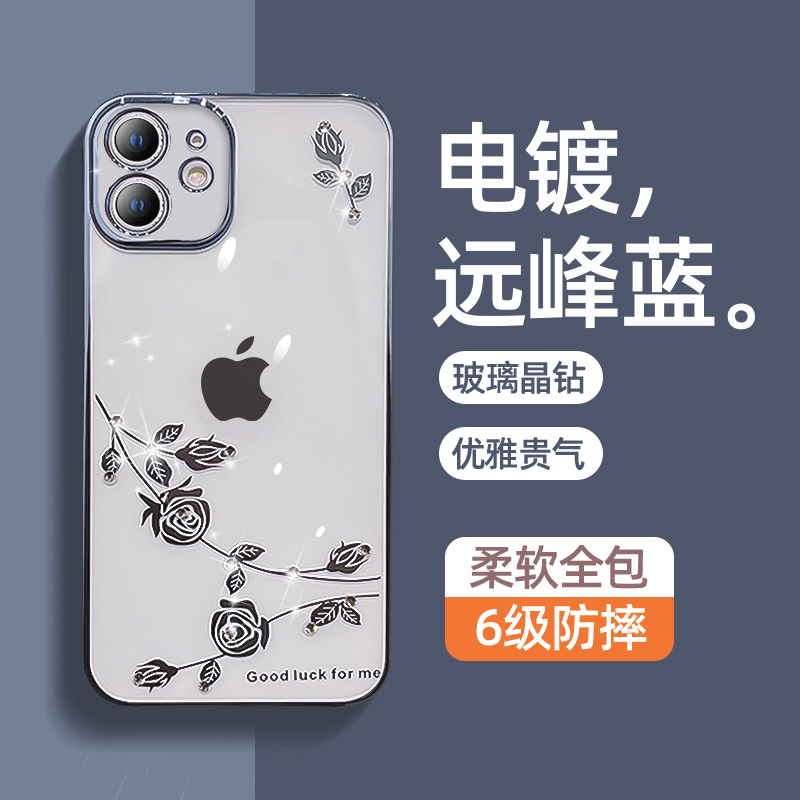 📚 苹果11手机壳水钻玫瑰花新款女16pro时尚17air全包xs适用iPhone8plus保护套xsmax透明硅胶xr高端15超薄14创意