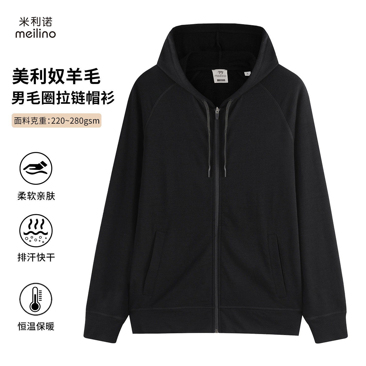 📚 可夫特户外美利奴羊毛外套男毛圈卫衣美丽诺徒步运动拉链上衣Q10